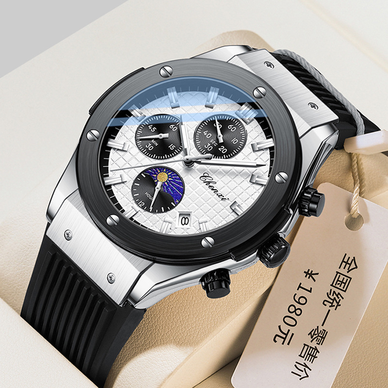 腕時計男型多機能真三眼六針超薄カレンダー夜光カレンダー透かし彫りファッショントレンド生放送起爆金