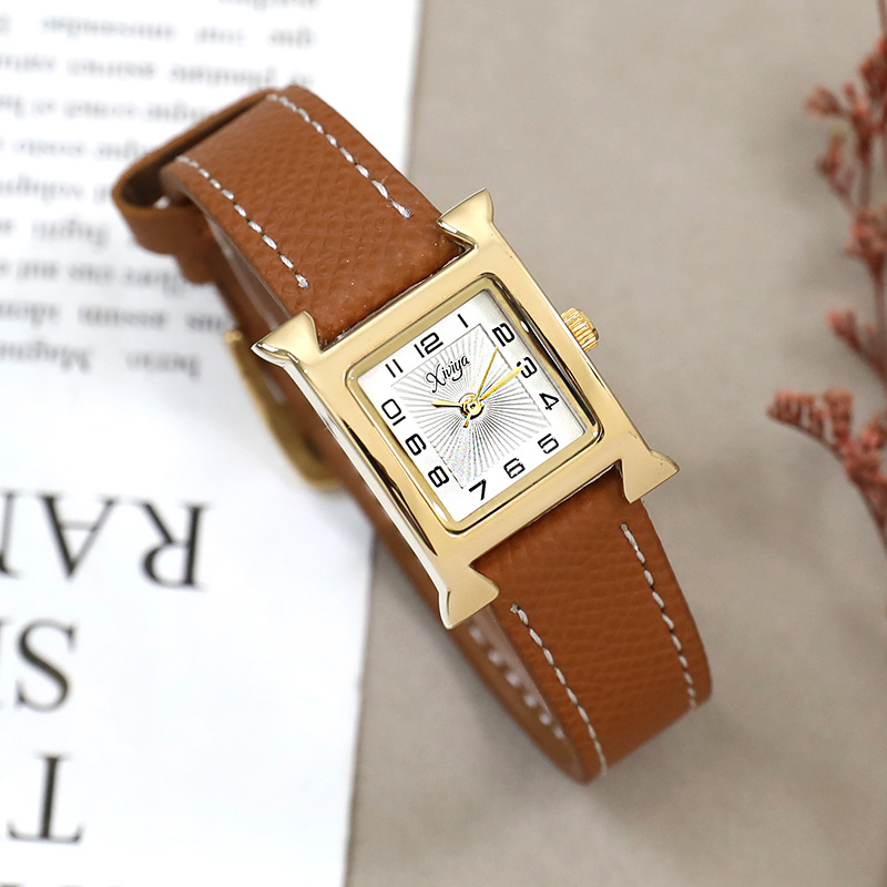専門店の正規品の小さい四角形の腕時計の女性のタイプの真牛のベルトの防水ネットの赤い生放送の人気の爆発の爆発の金の2024新型の時計