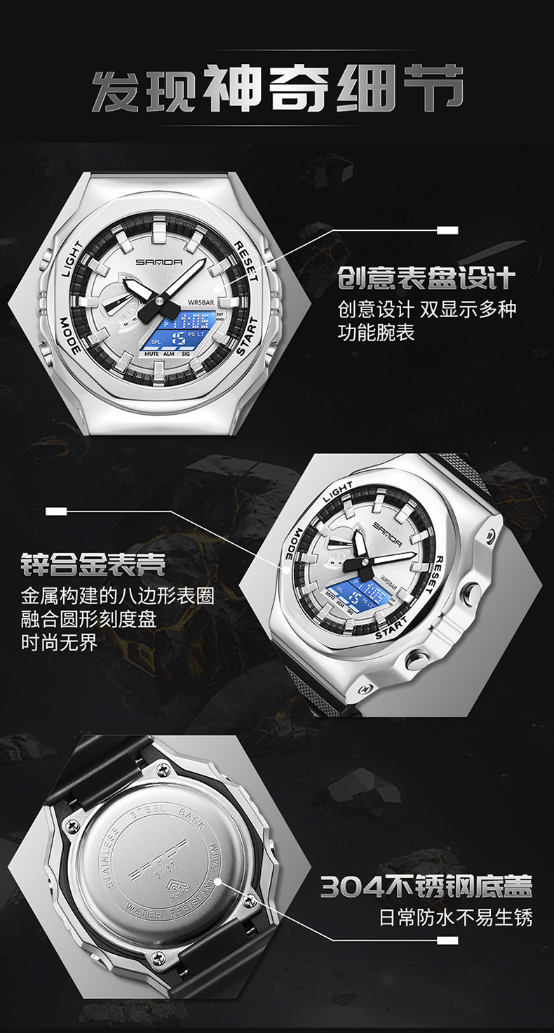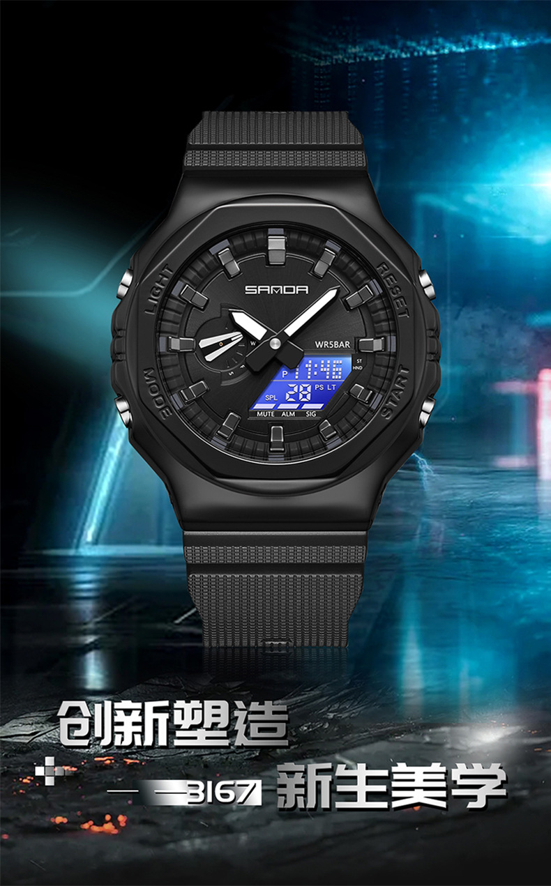 新型スポーツ腕時計男性ファッション大文字板多機能防水学生ファッション対外貿易卸売り男性電子時計