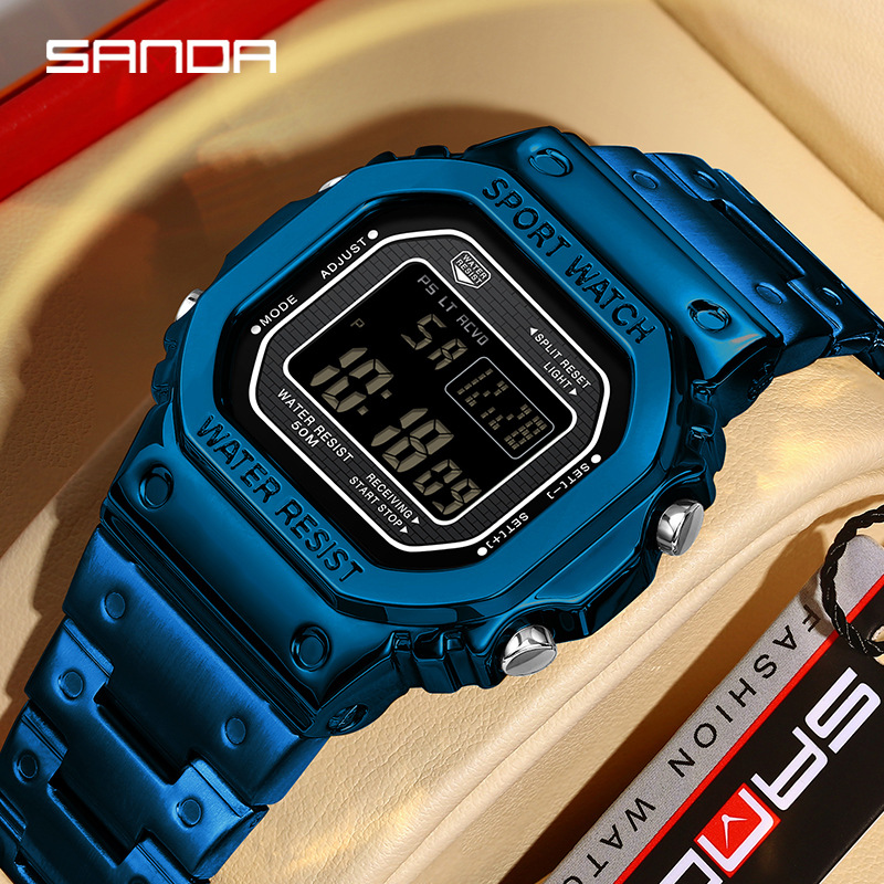 専門店の正規品腕時計多機能角型単芯鋼帯電子時計ファッション運動手灯目覚まし時計ビジネス