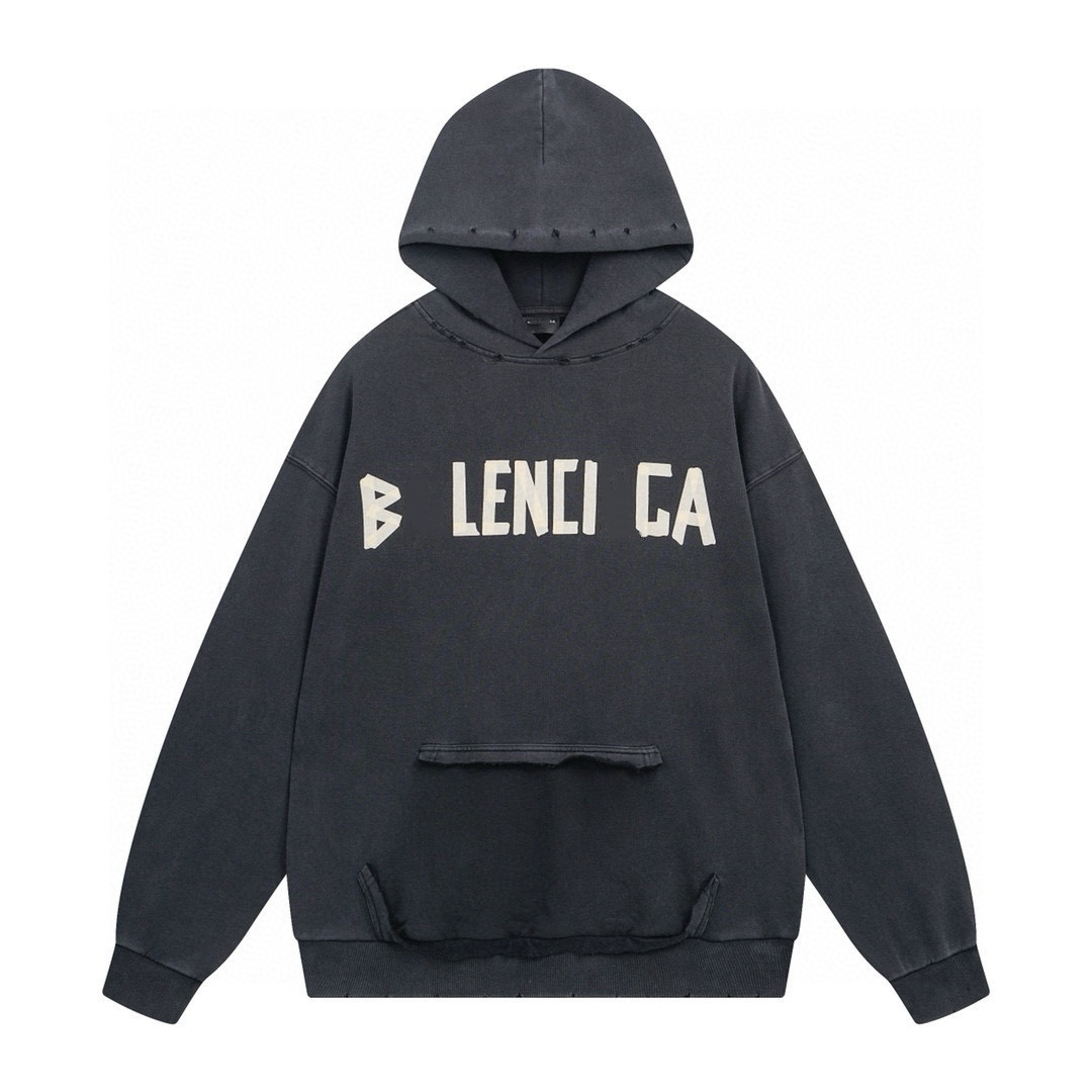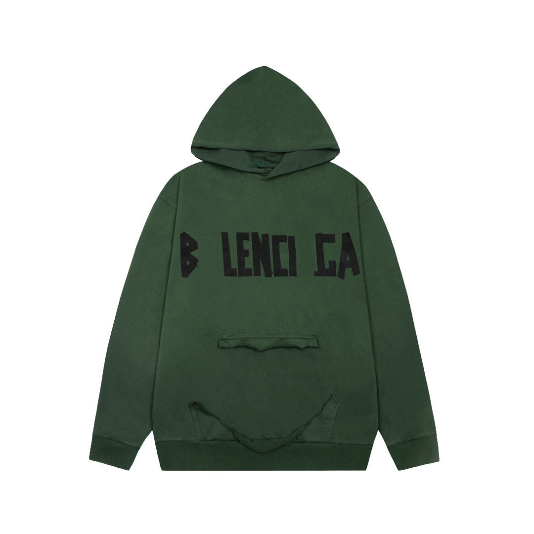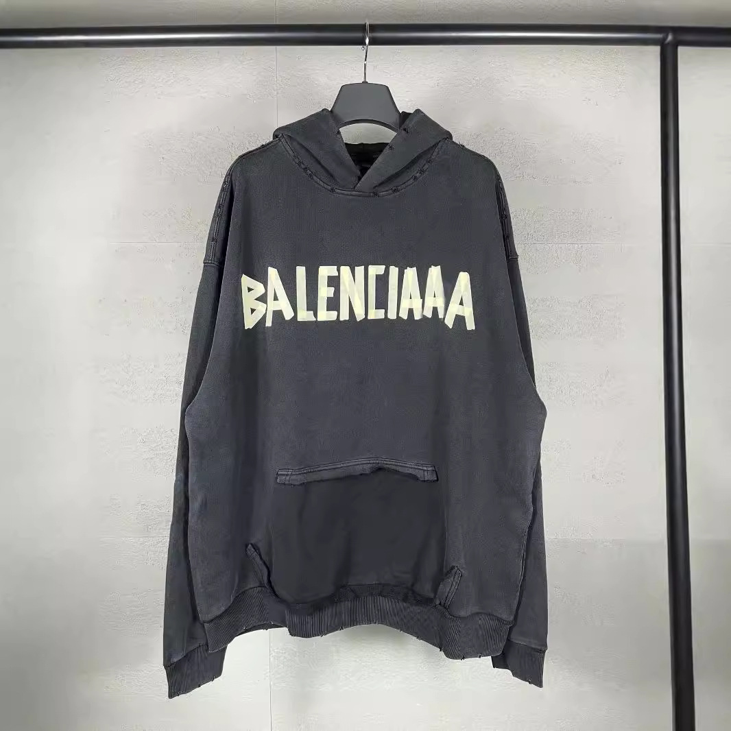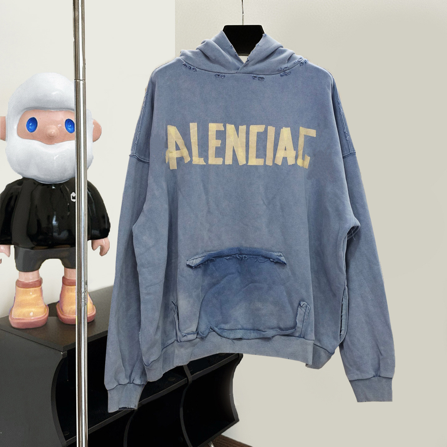 正确版本高品质B家25SS经典大爆美纹纸胶带水洗磨烂做旧连帽卫衣