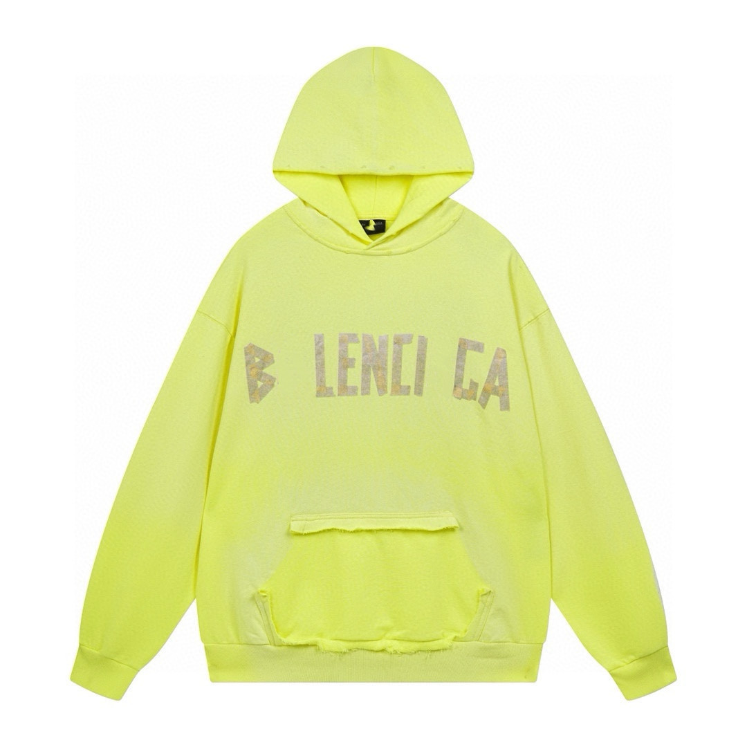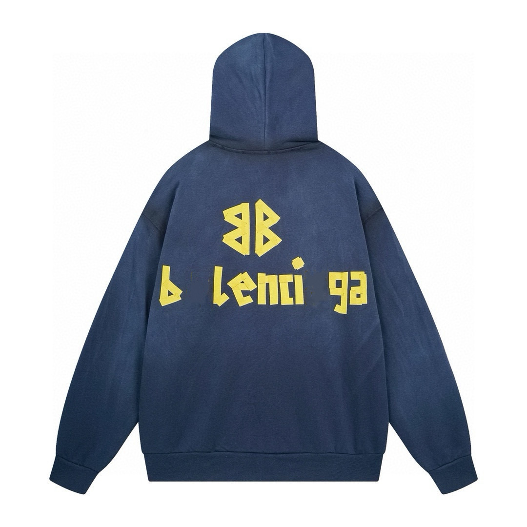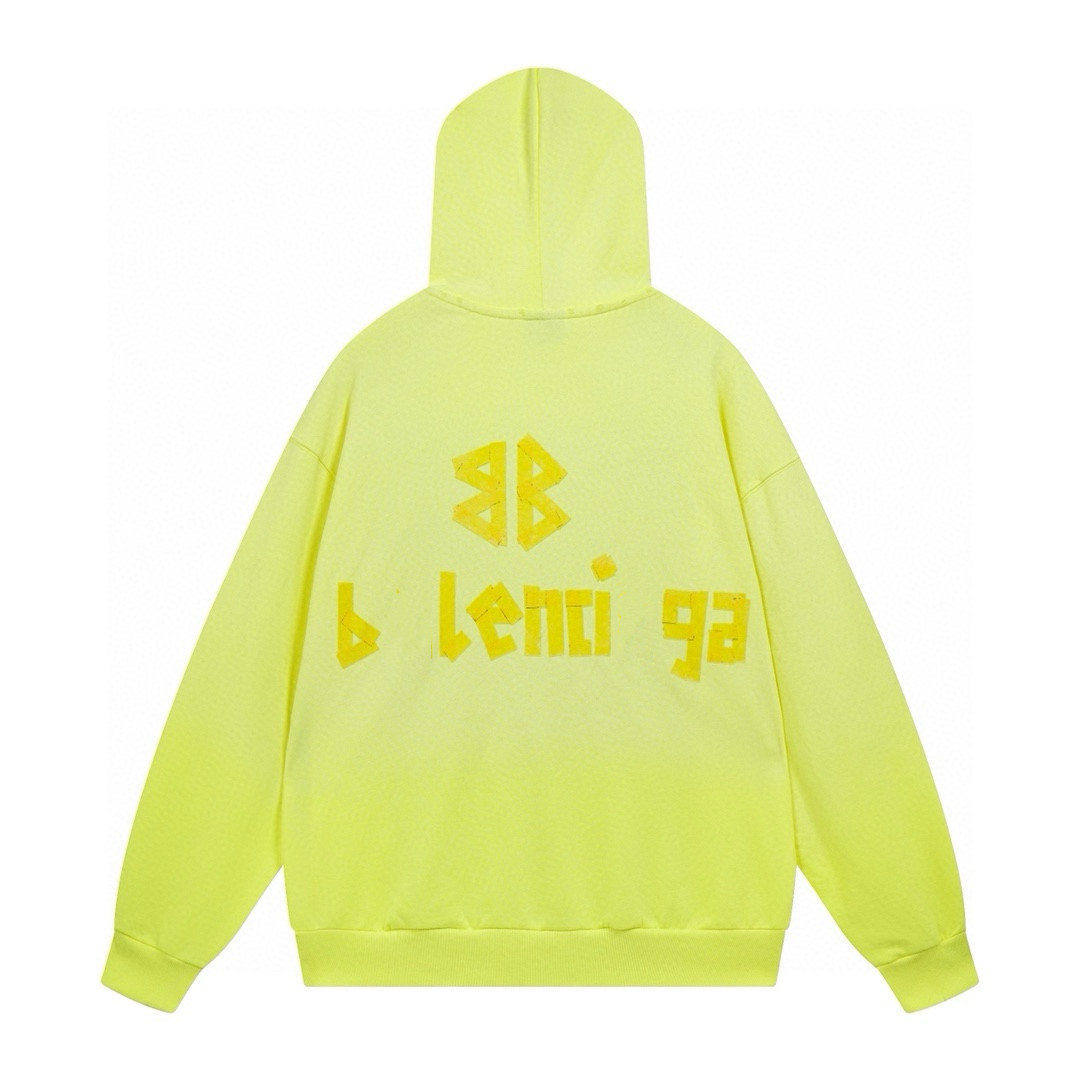 正确版本高品质B家25SS经典大爆美纹纸胶带水洗磨烂做旧连帽卫衣