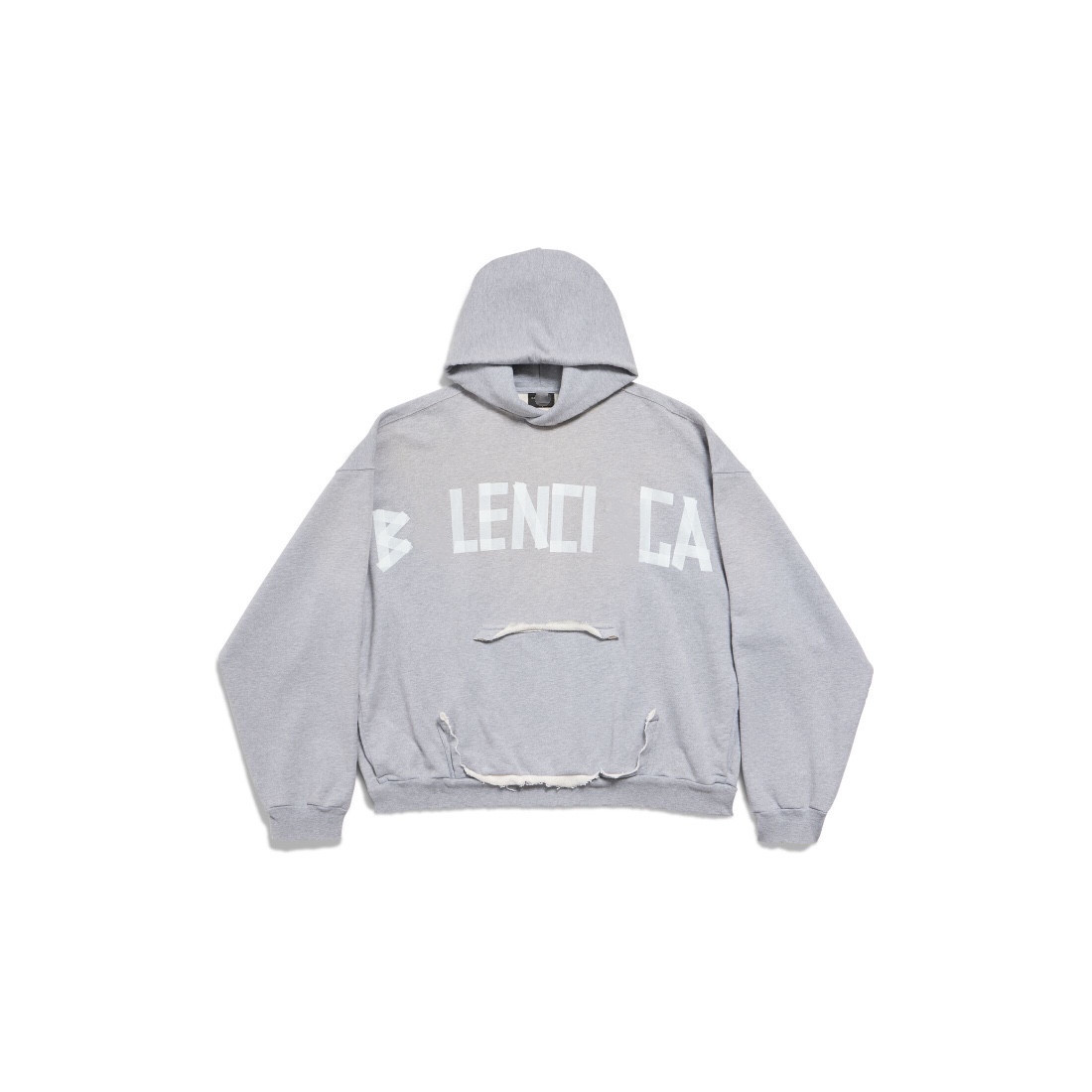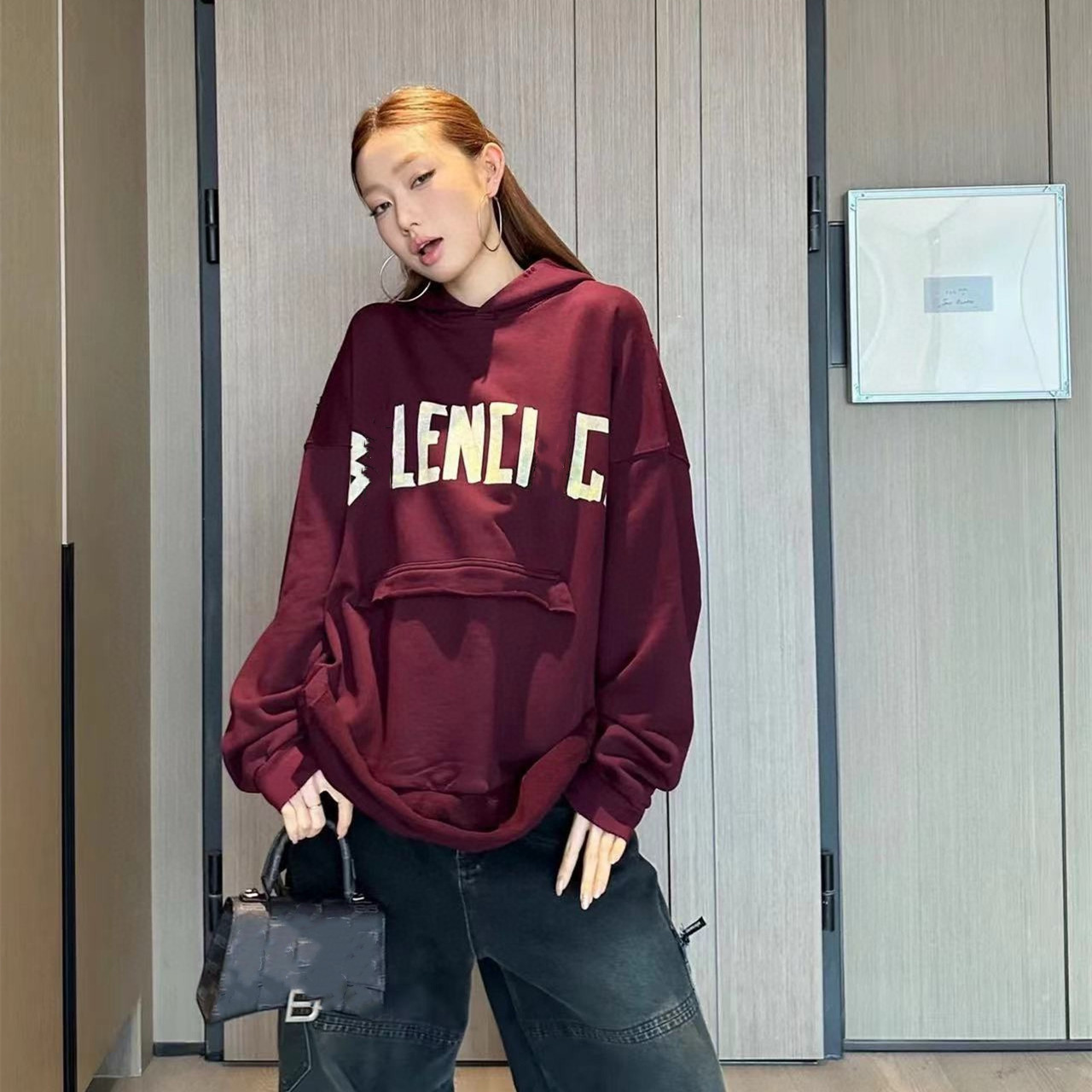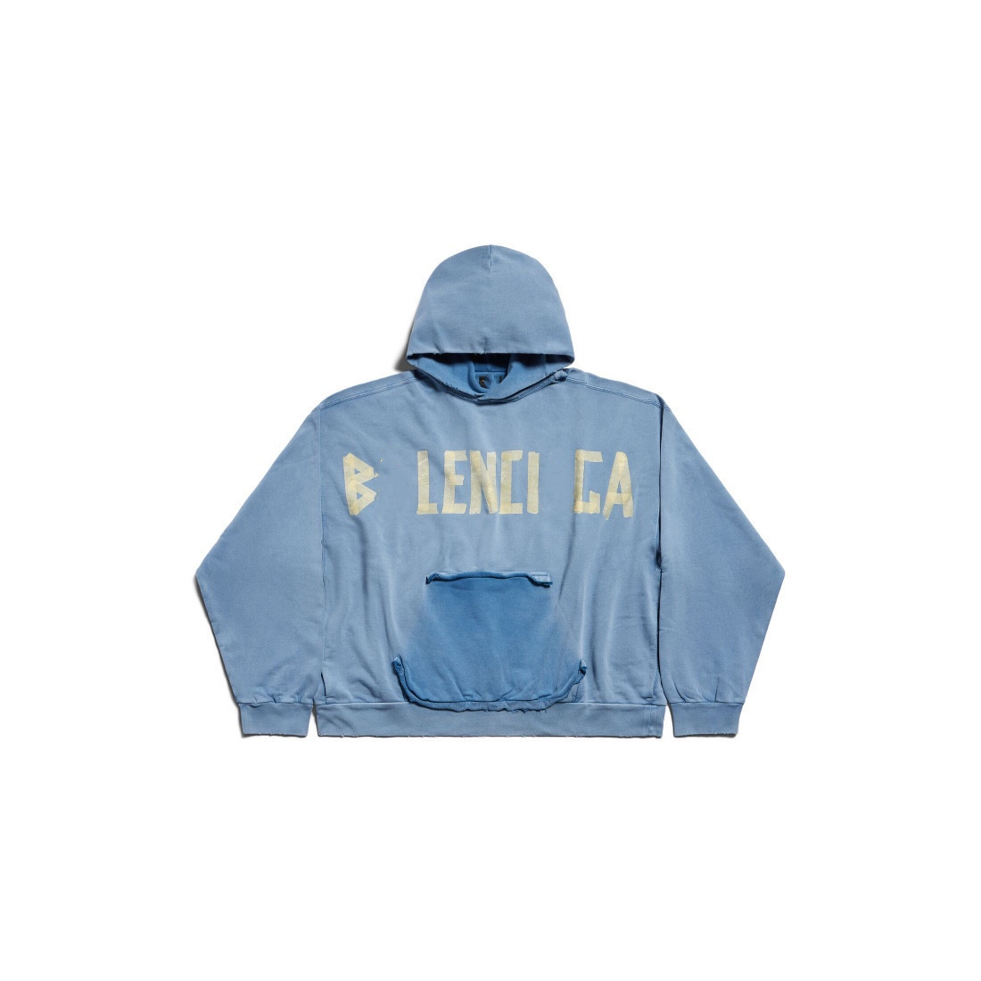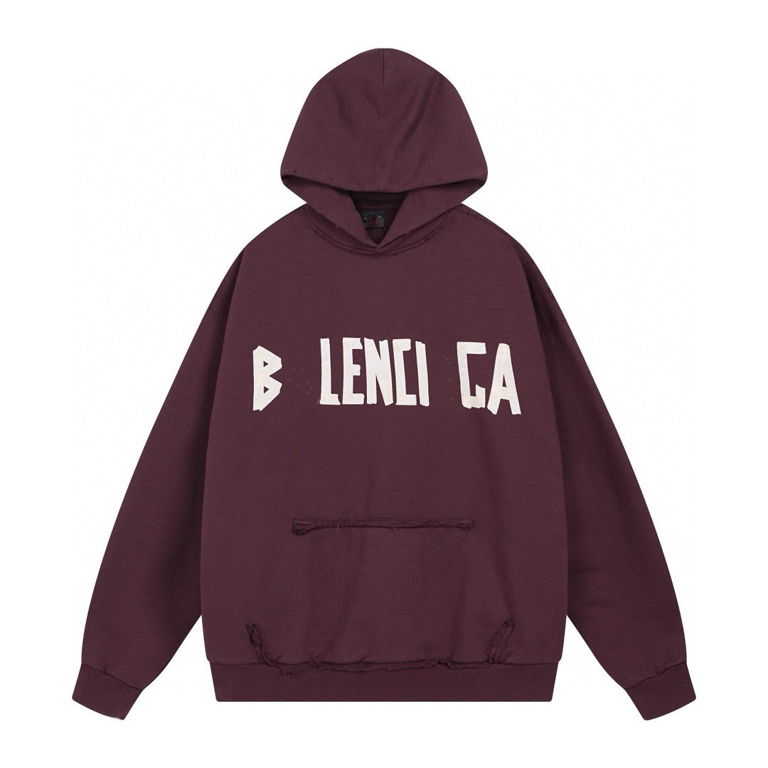 正确版本高品质B家25SS经典大爆美纹纸胶带水洗磨烂做旧连帽卫衣