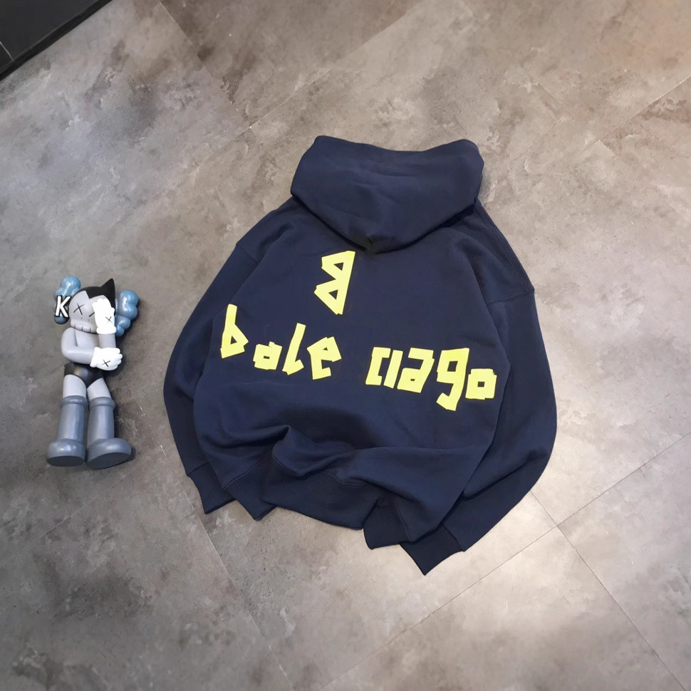 巴黎正确版B家美纹纸水洗做旧黄胶带帽衫B潮牌男女高版本连帽卫衣