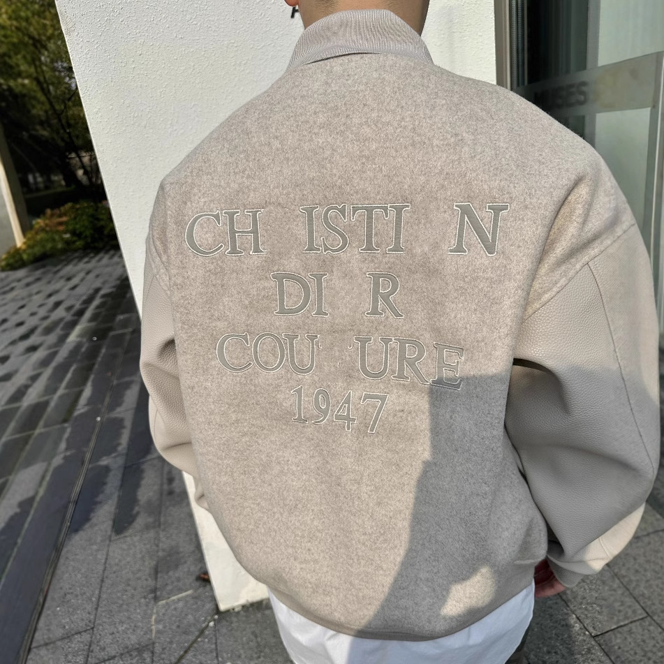 2025秋冬新作 正規版 オリジナルDIブランド 背面文字刺繍 レザースリーブ ベースボールジャケット