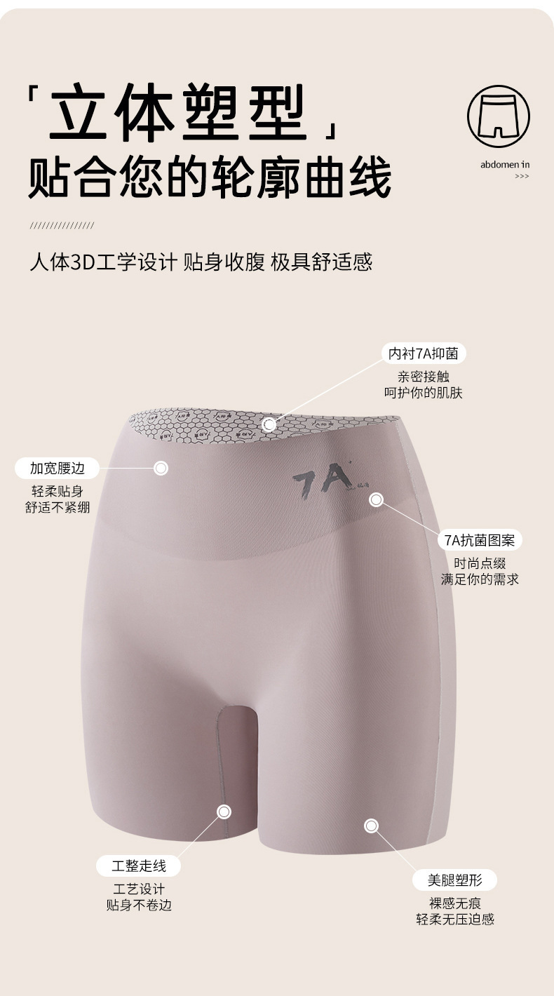 7A抑菌防走光安全裤中高腰无痕护腰内裤三合一女收腹提臀打底内裤