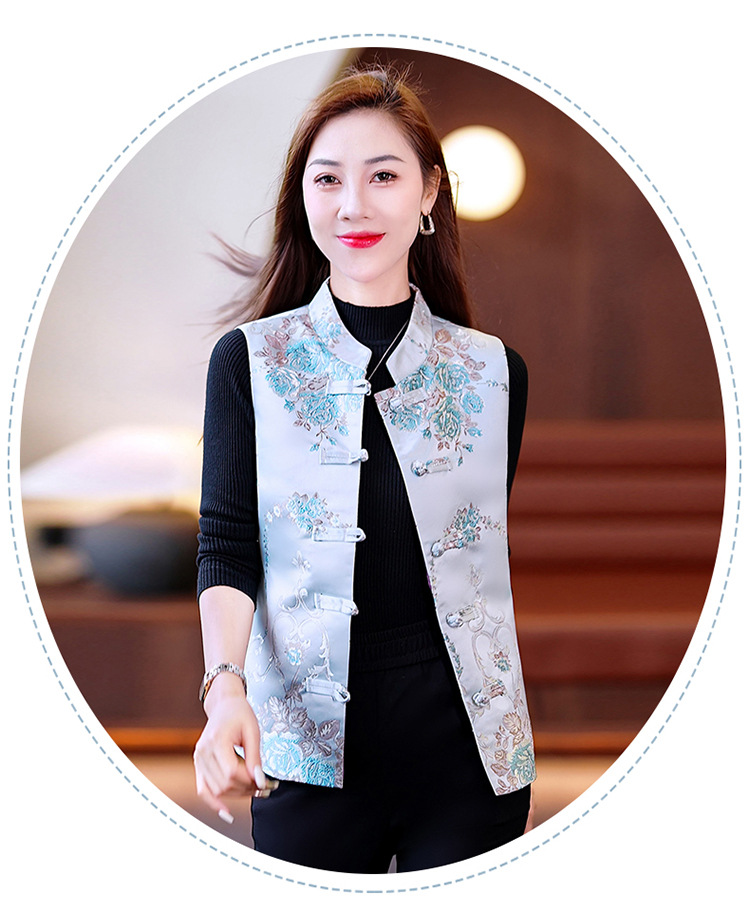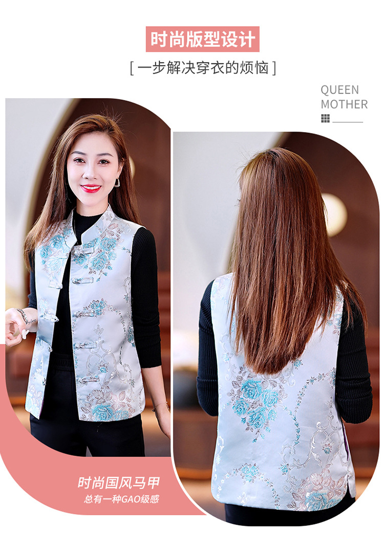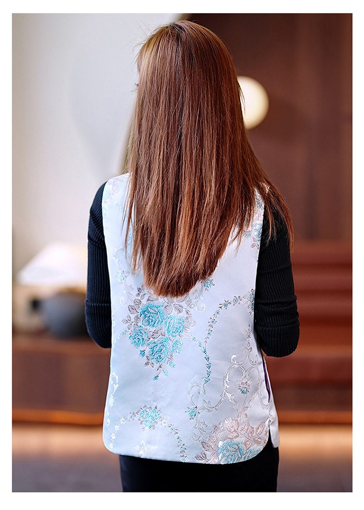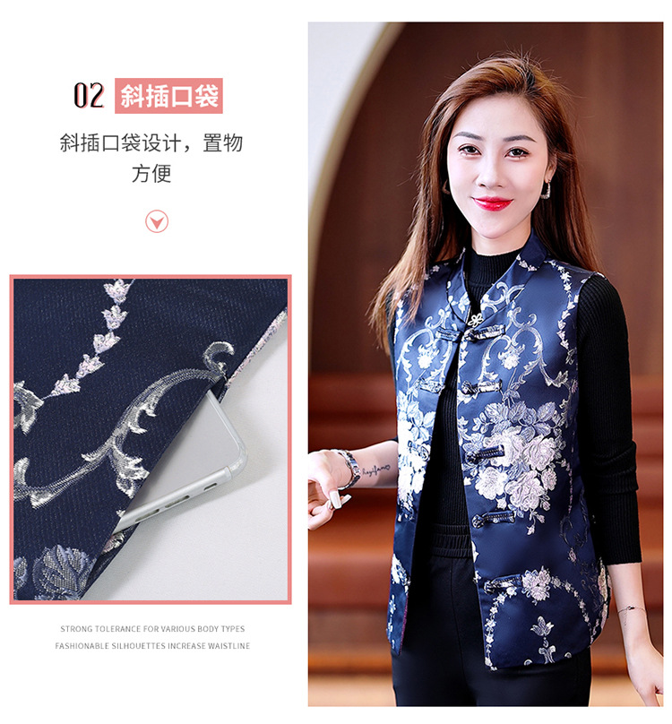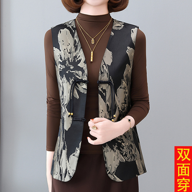 新中国式の国風馬甲の女性の高級な春秋のプリントは肩のレトロな皿をつなぎ合わせます。