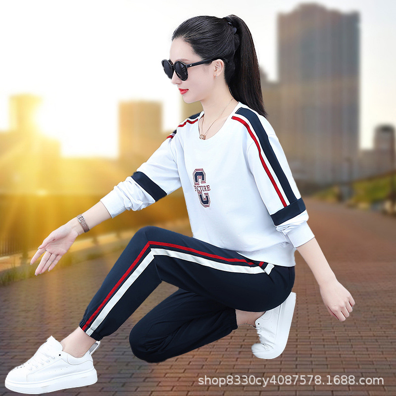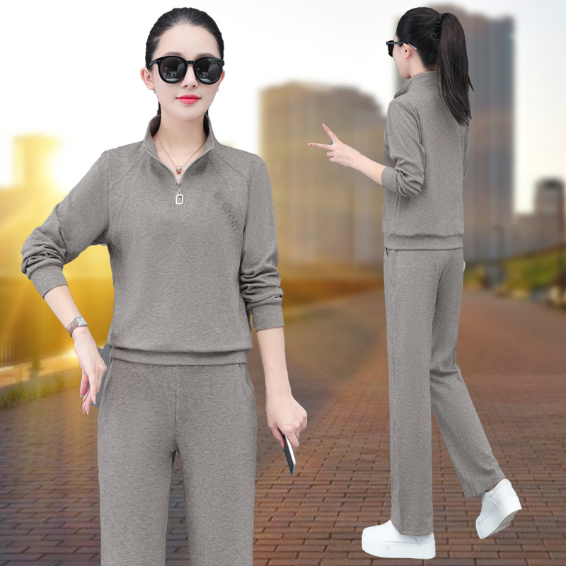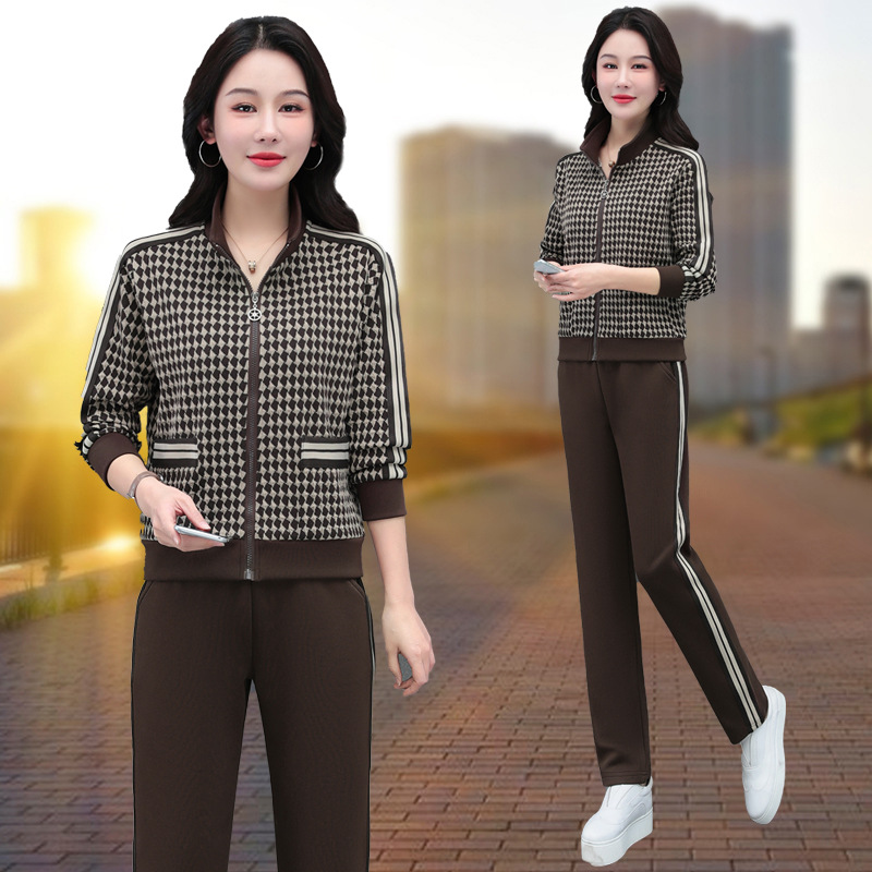 スポーツスーツの女性の秋の新型ファッションの洋風の気質の中年のお母さんのレジャーの衛衣の広場のダンスのランニングの2つのセット