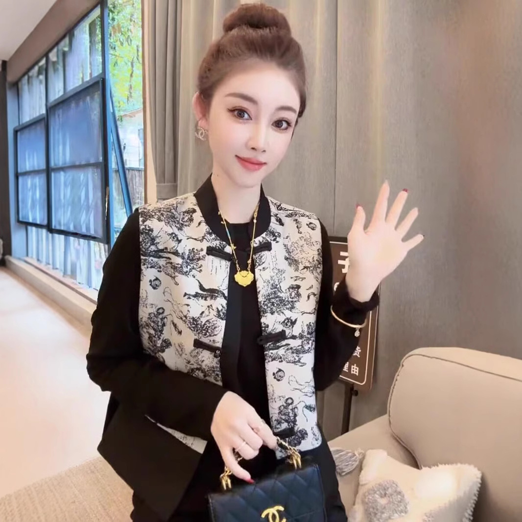 代発起爆国風中国式復古盤留め馬甲2025春の新型ファッション気質ジャカードベスト