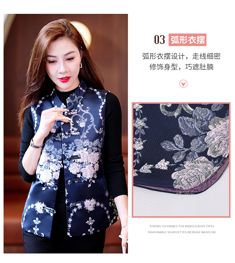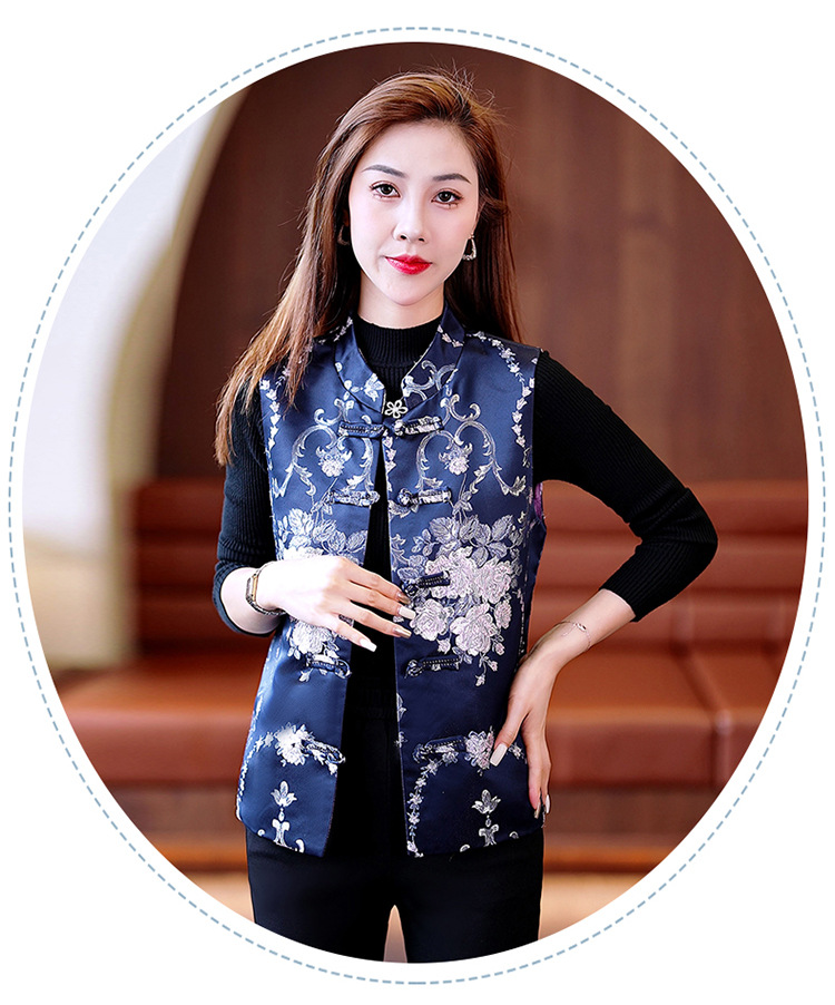 【繁華】重工刺繍馬挟み新中国式国風唐装レトロ盤ボタンカン肩秋冬挟み綿馬甲女