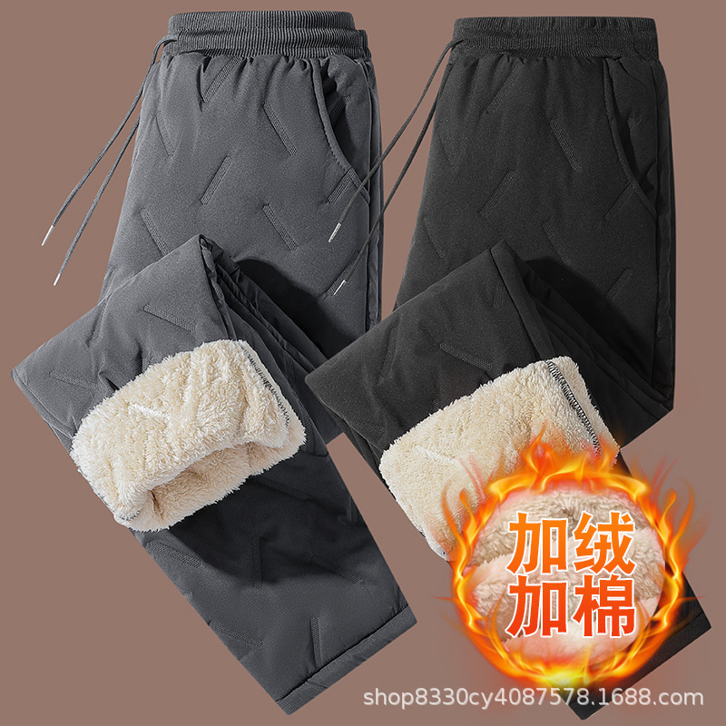 ダウン綿ズボンの女性は冬に2023の新しいファッション保温ズボンとベルベットを着て、ストレートのゆるいカジュアルズボンを厚くした