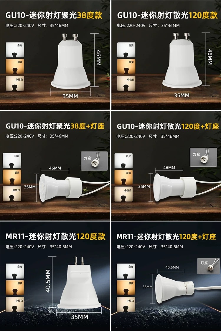 3W GU10 レンズ,3W MR11レンズ,MR16 ランプヘッド-10cm