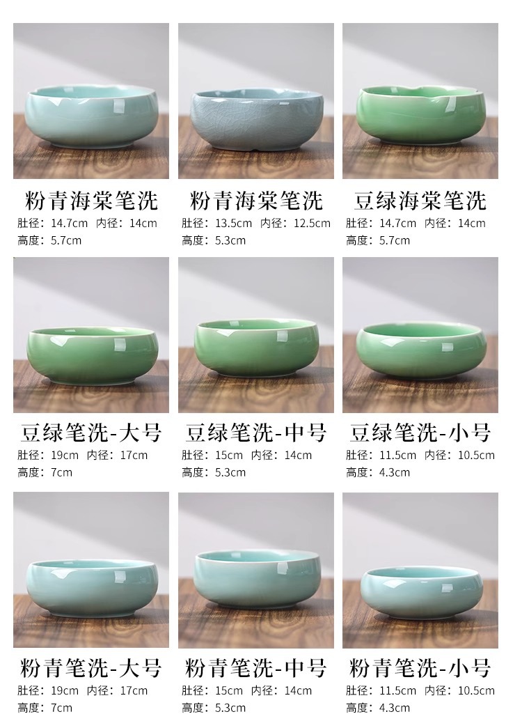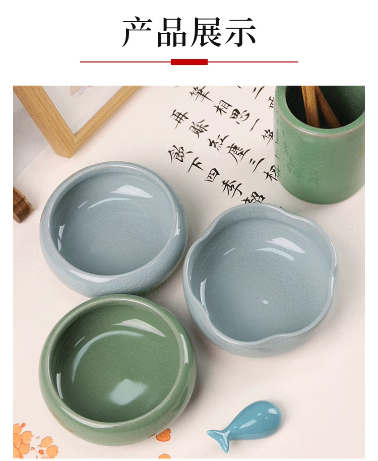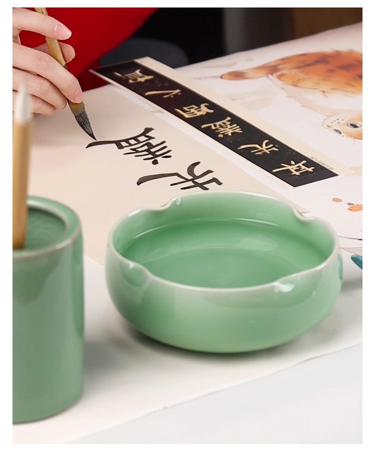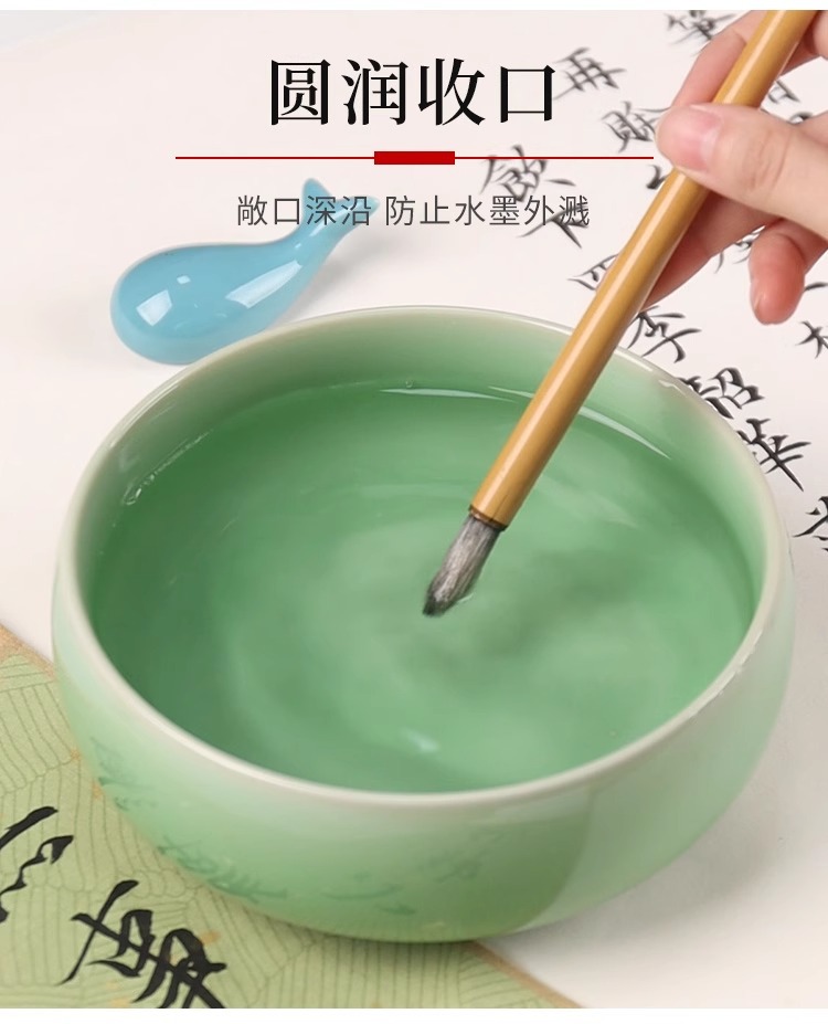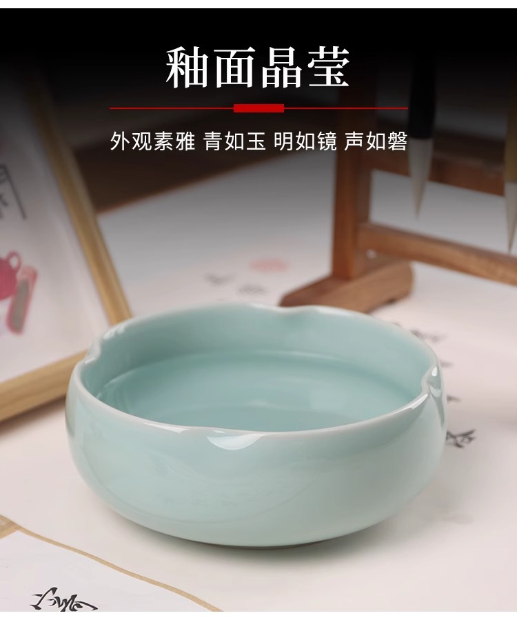 青磁ペン洗い桶、墨皿、大墨池、硯、墨蝶弟、粉水盂、陶器ペン洗い、書道、フランス絵画筆洗い