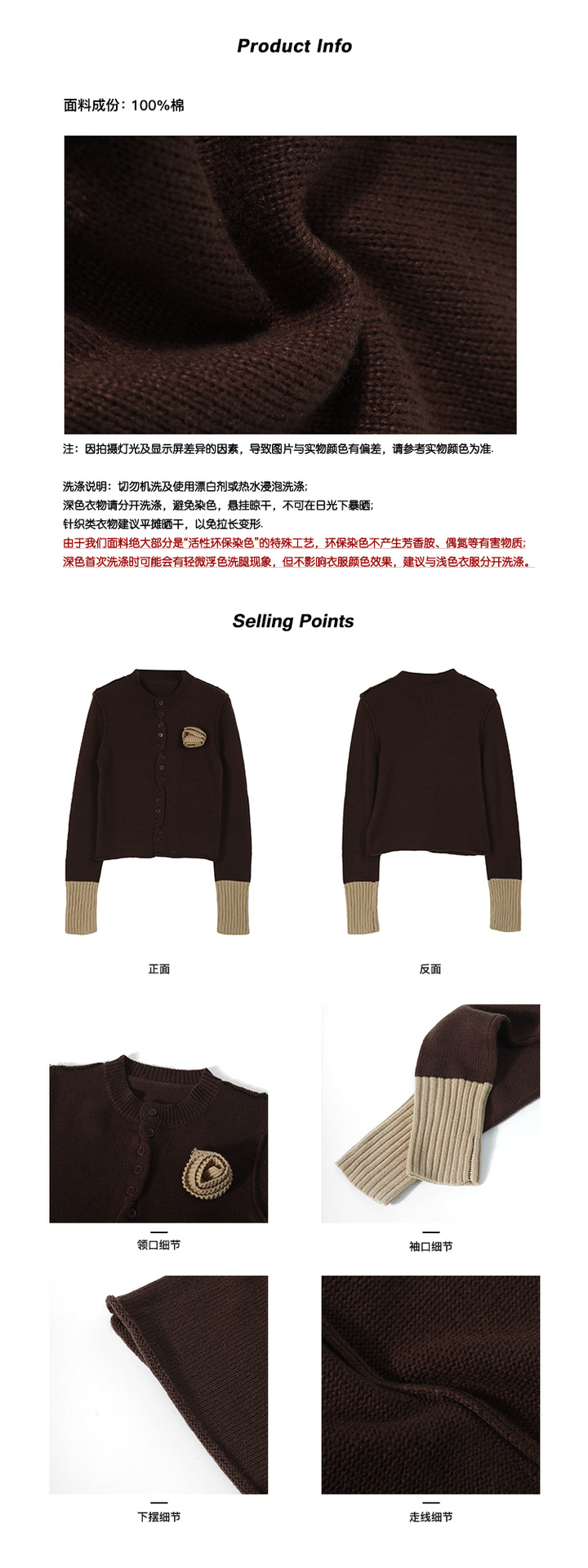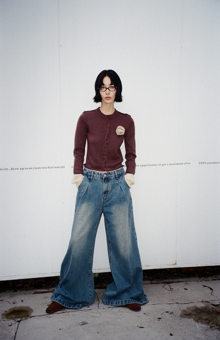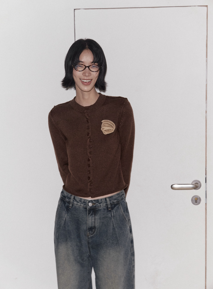 【電子商取引限定】優しく甘い立体的なローズ柄のピュアコットンセーター、女性用秋冬コントラストカラーニットカーディガン