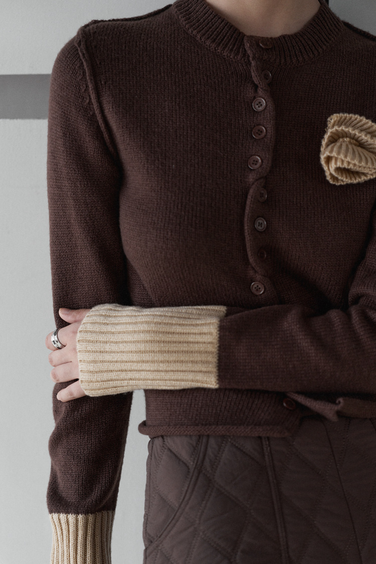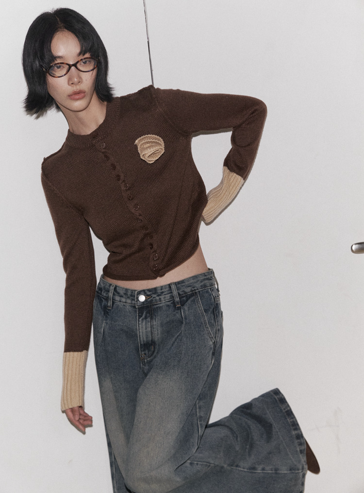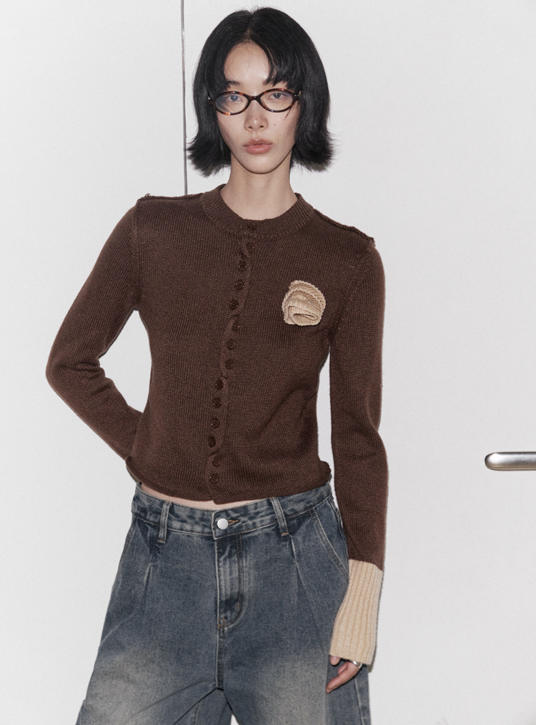 UNITY MODE 温柔甜美立体玫瑰花纯棉毛衣女秋冬撞色针织衫241721