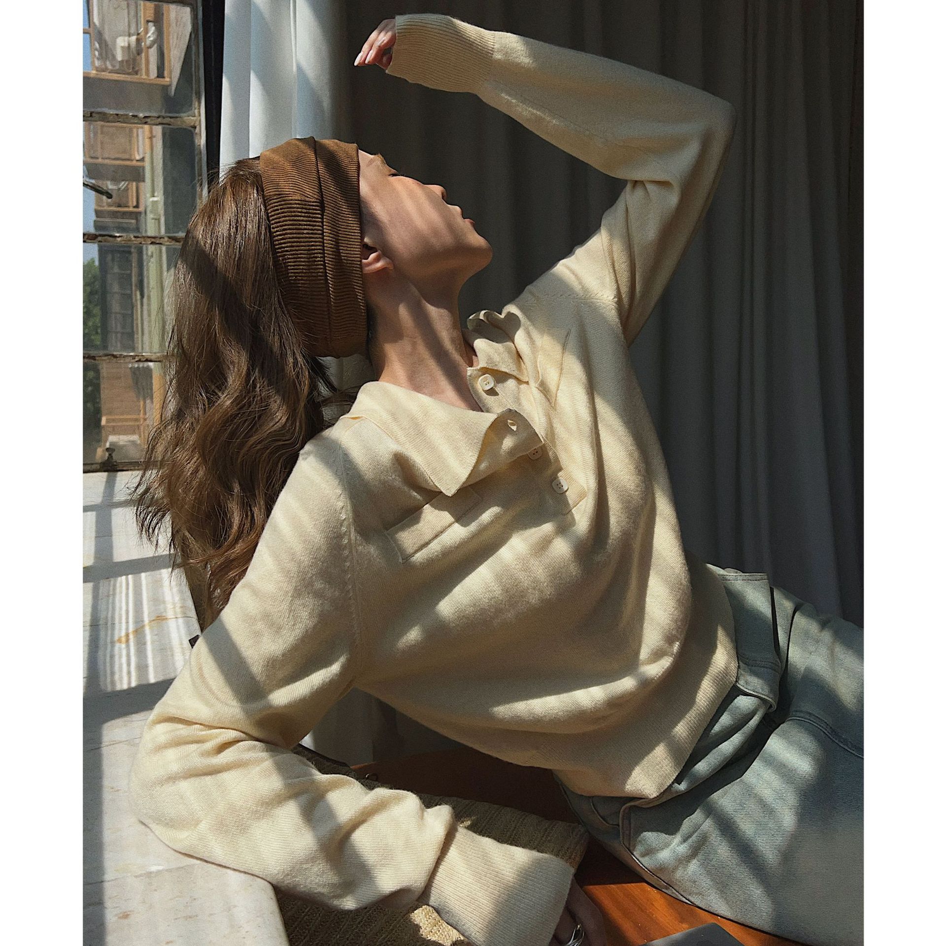 UNITY MODE ドーパミン中空ウールボトリングシャツ初秋の控えめなマルチカラースリムニットセーター女性用