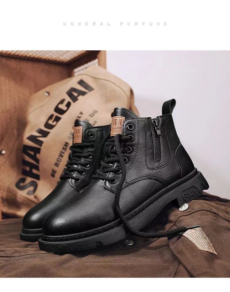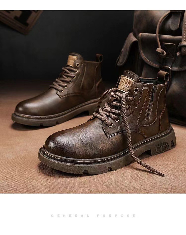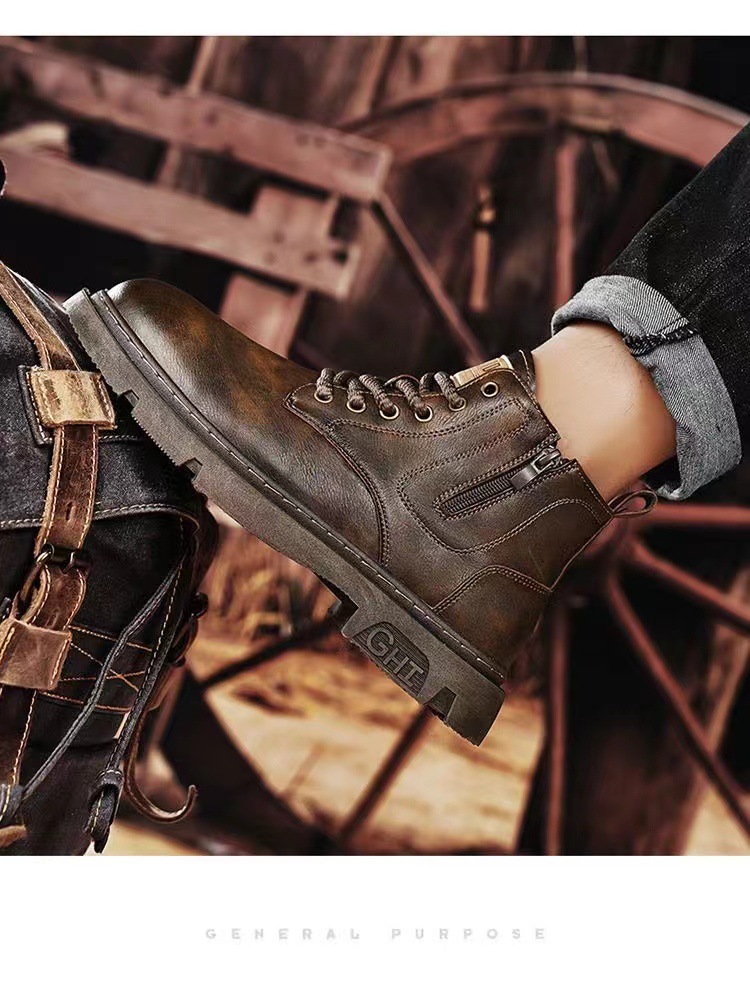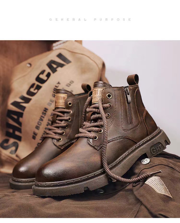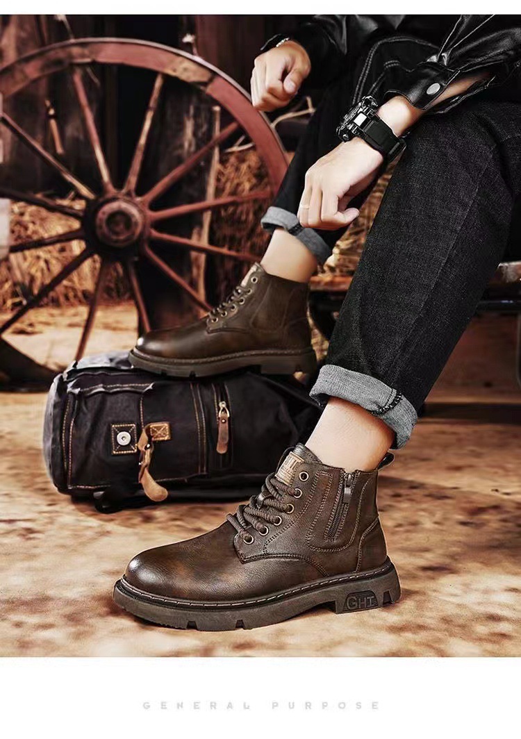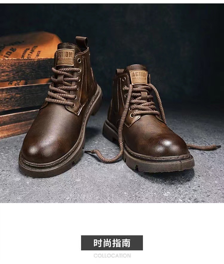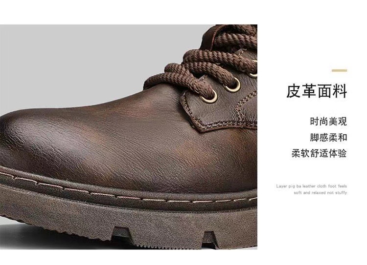 秋冬男鞋复古马丁靴男英伦风高帮男士休闲皮鞋中帮户外防滑工装靴