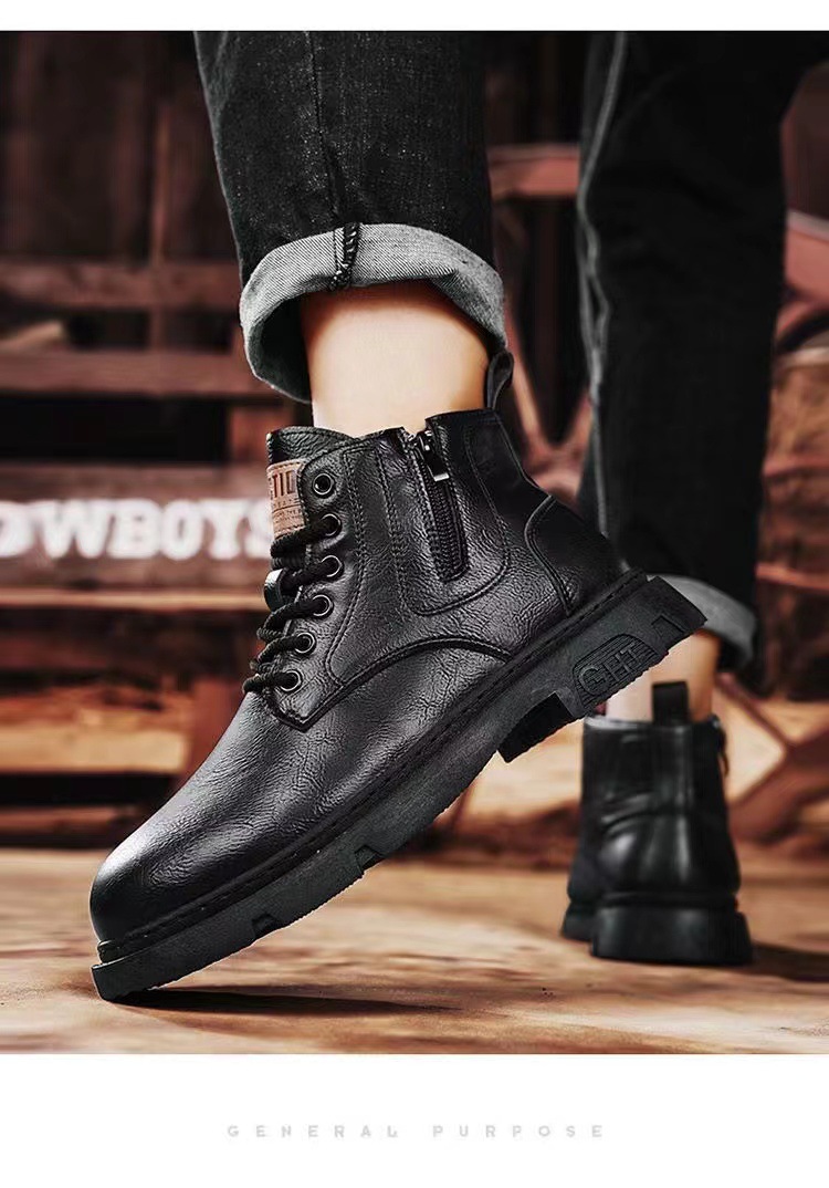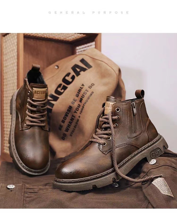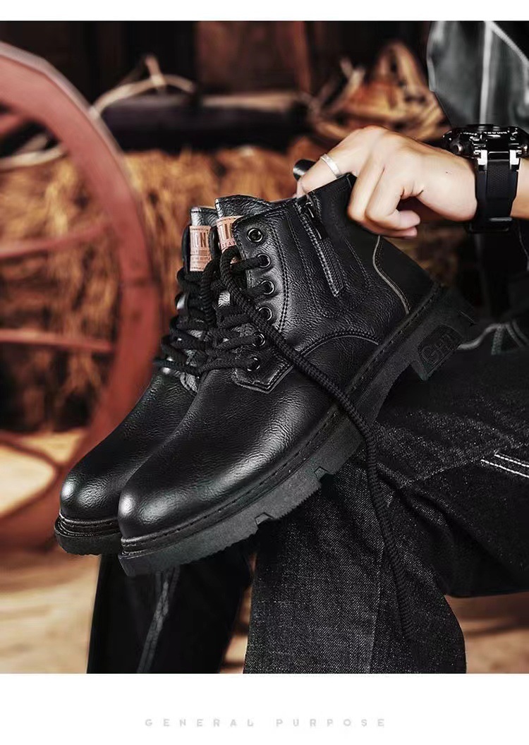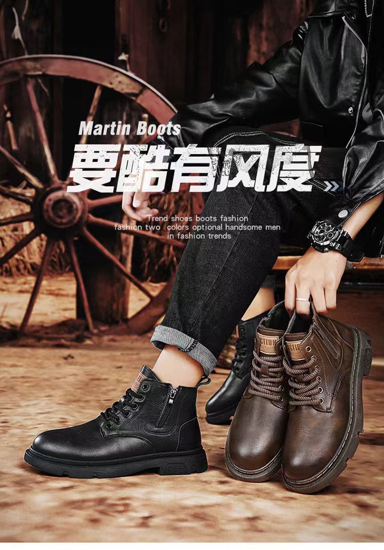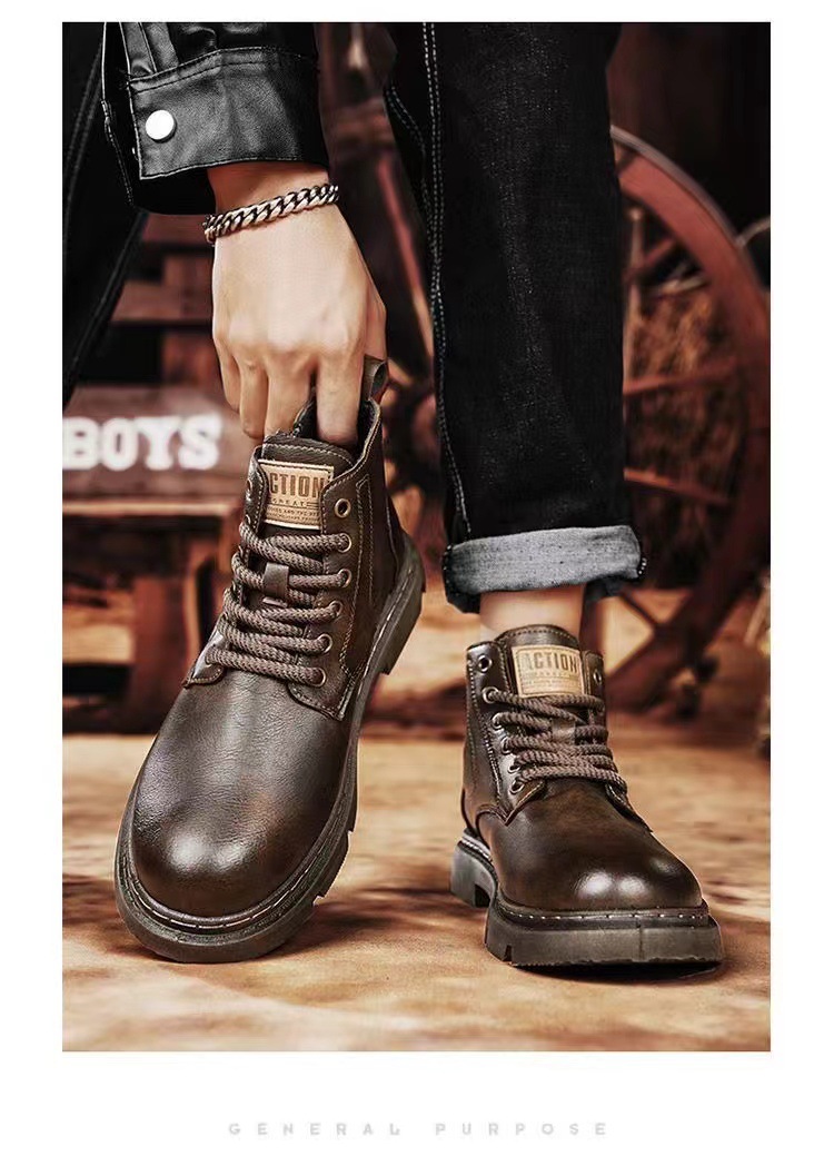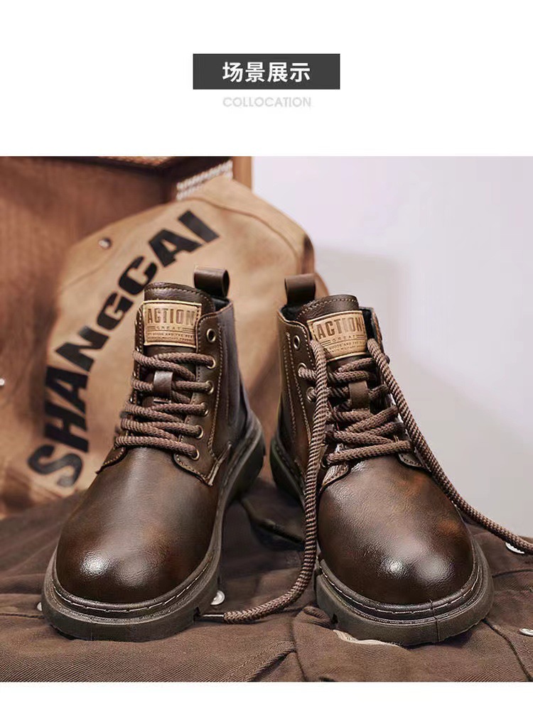 2024秋冬に起爆したマーティンブーツ士英倫風がレトロでかっこいいファッションを手伝って、男性の保温工装靴を手に入れた