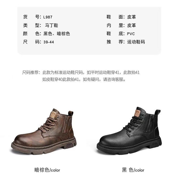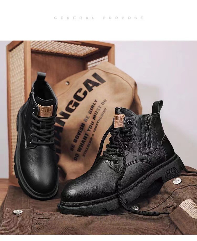软底软底秋季新款马丁靴复古男鞋工作高帮皮鞋防滑工装鞋休闲短靴
