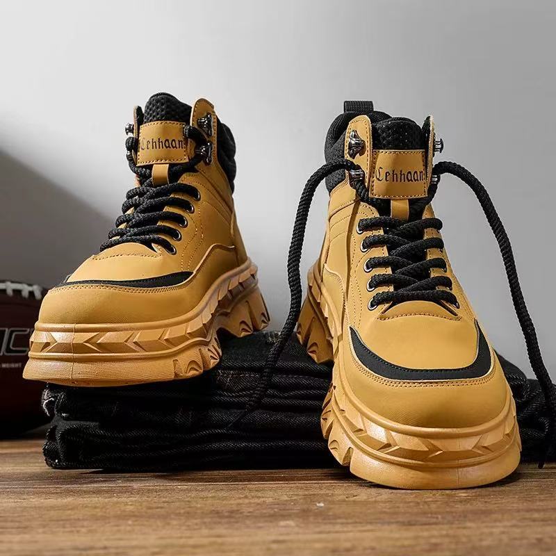 厚底防水马丁靴男鞋秋季新款户外大黄靴潮流百搭休闲高帮工装潮鞋