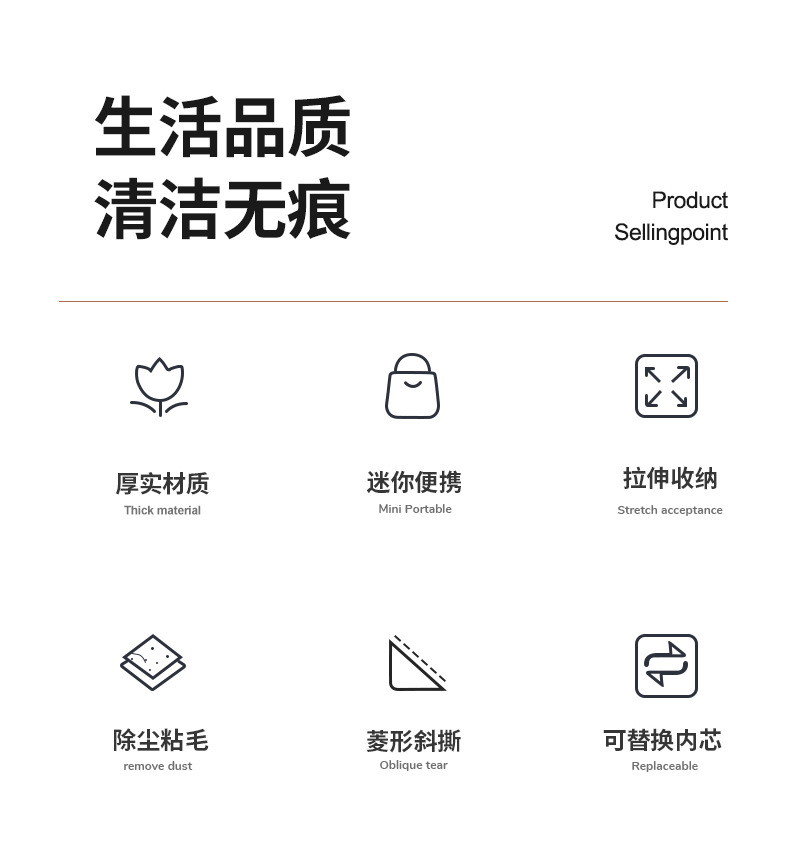 轻奢粘毛器可撕式纸粘毛滚筒纸衣物毡毛黏毛器宠物沾毛滚筒去毛刷