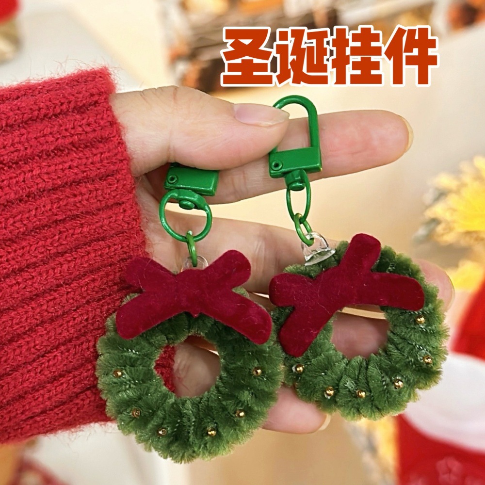 圣诞节日装饰可爱迷你花环胸针挂件小香风百搭饰品少女钥匙扣挂坠