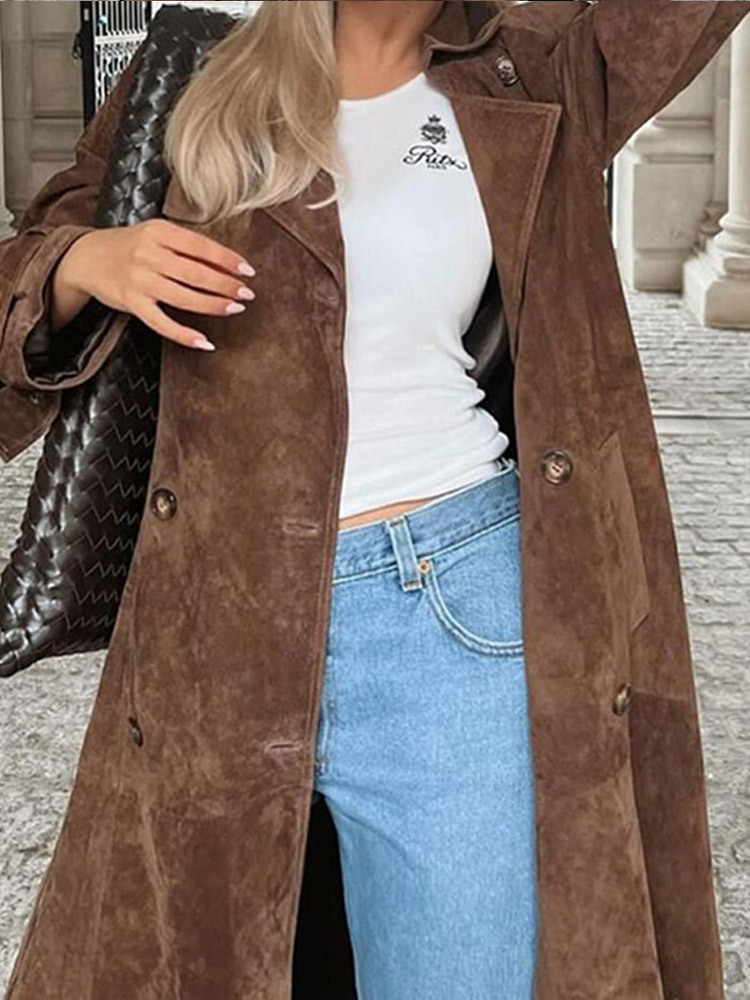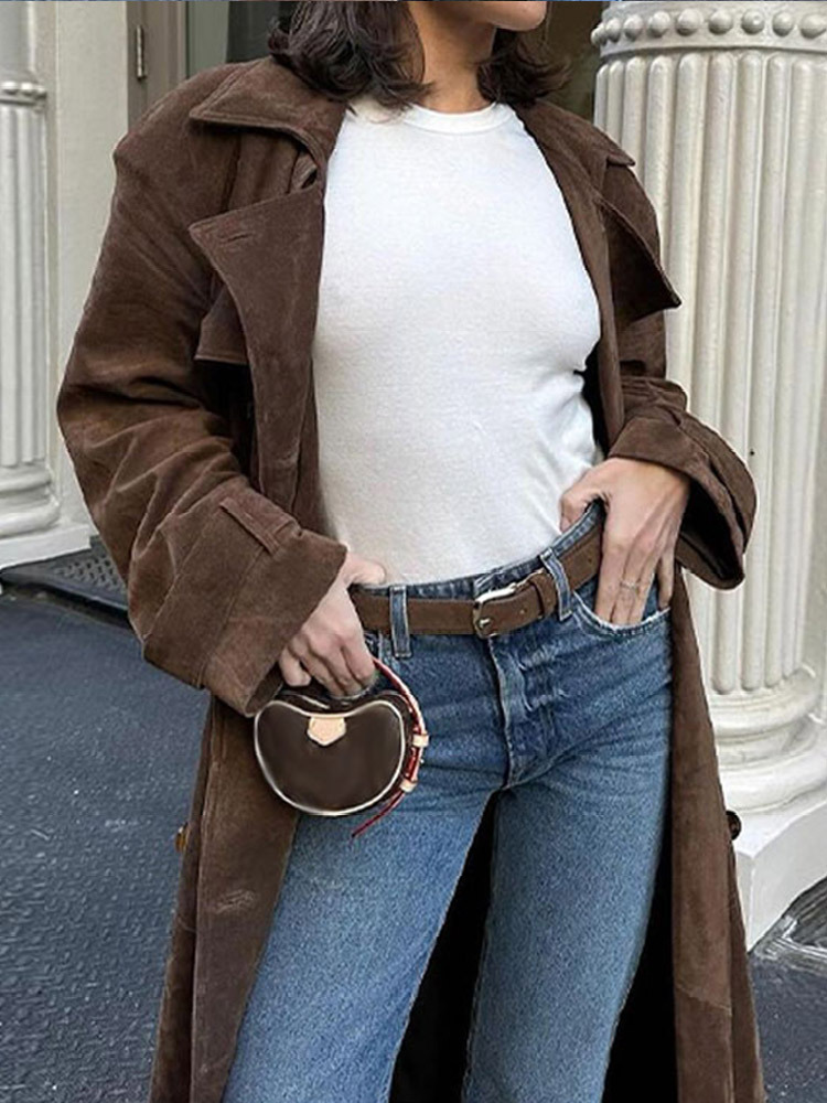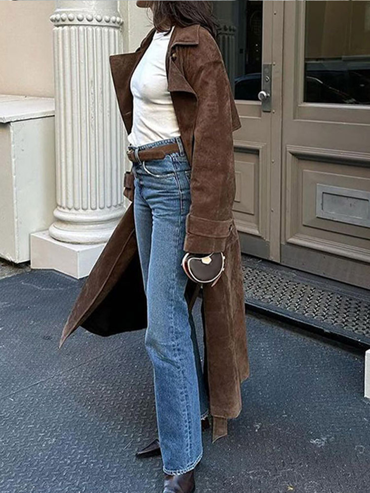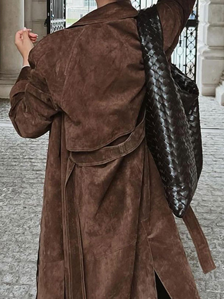 値下げします! 欧米の国境を越えた快適なカジュアルファッションには、スエードのコートのストラップが腰に長いコートを入れている