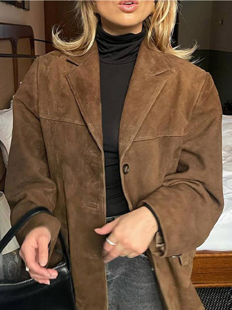 美拉德色系麂皮绒收腰系带夹克半裙套装女2025跨境欧美秋冬新款