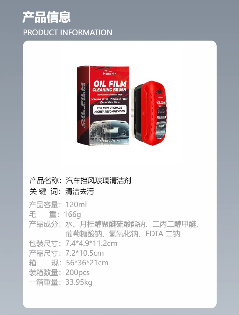 厂家供应汽车玻璃油膜清洁刷后视镜油膜去除剂镀膜疏水油膜清洁剂