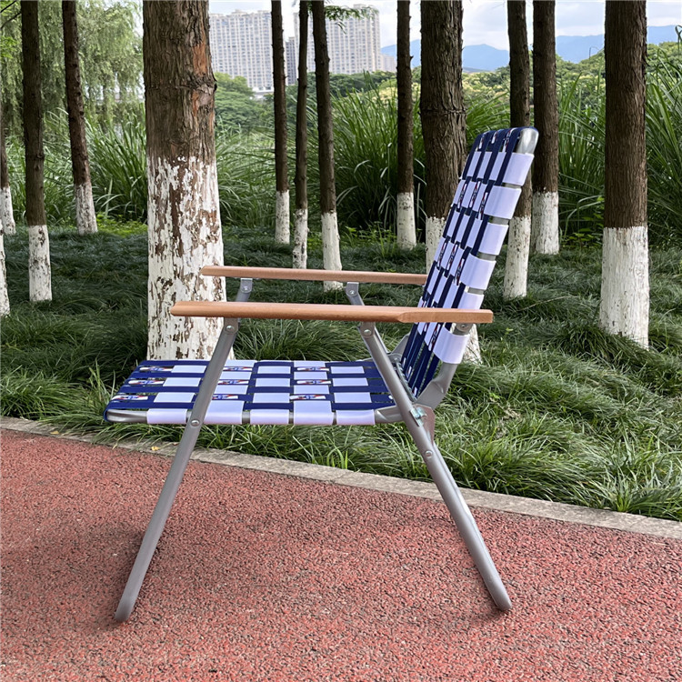 戸外折り畳み椅子のひも付き椅子の実木手すりキャンプ椅子の携帯型レジャービーチ椅子の卸売り