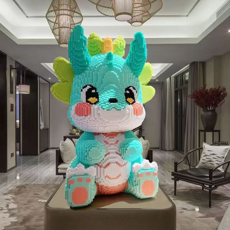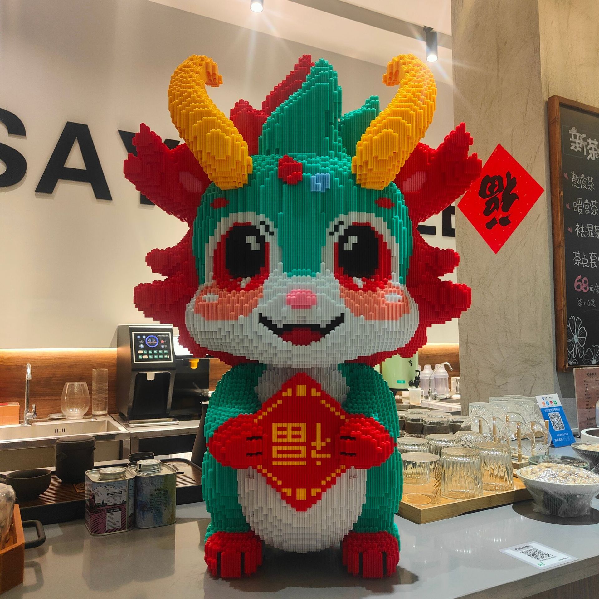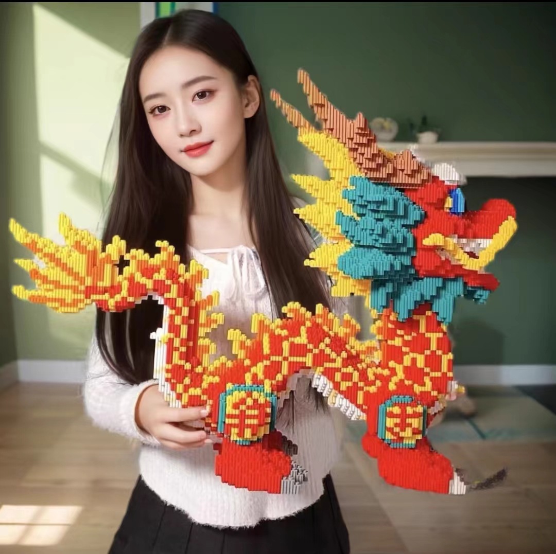 2024新型中国マスコット生肖祥瑞火龍麒麟積み木盛り合わせ玩具男少女プレゼントパズル