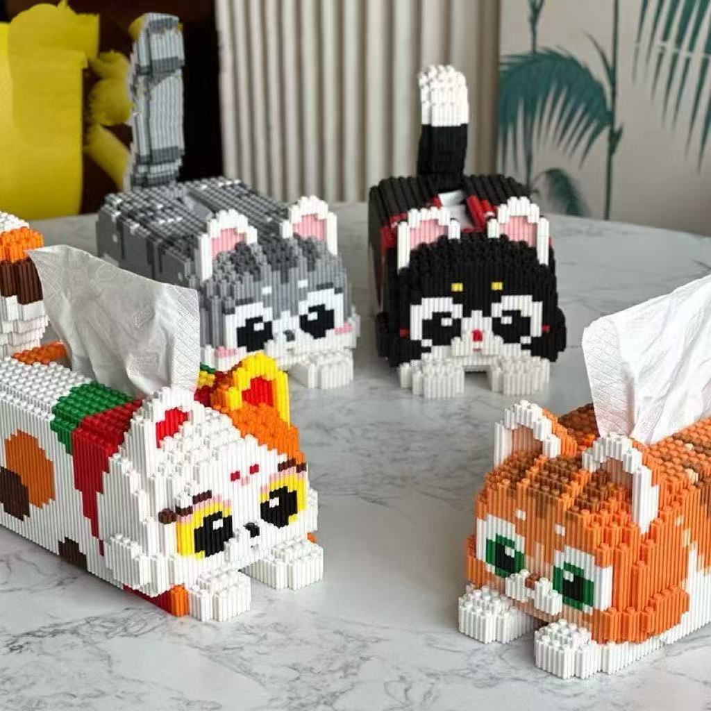 かわいい猫ティッシュケース積み木子供知育玩具男の子女の子手作り招き猫6歳から8歳までの小さな粒子