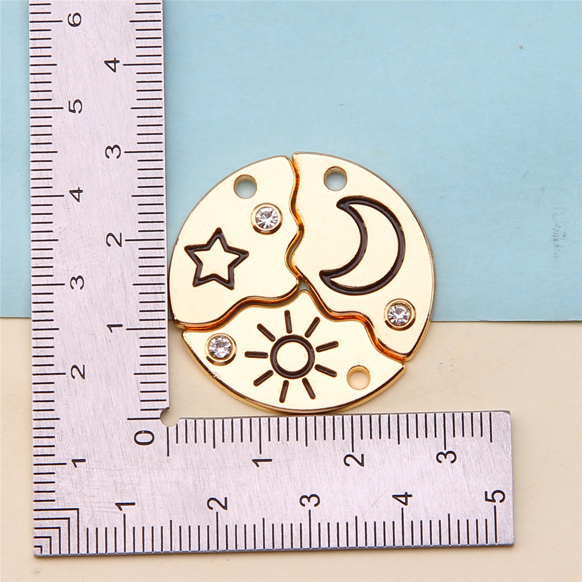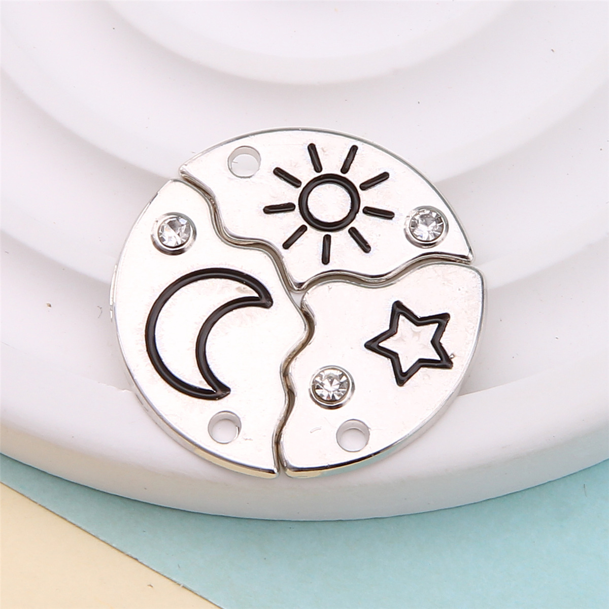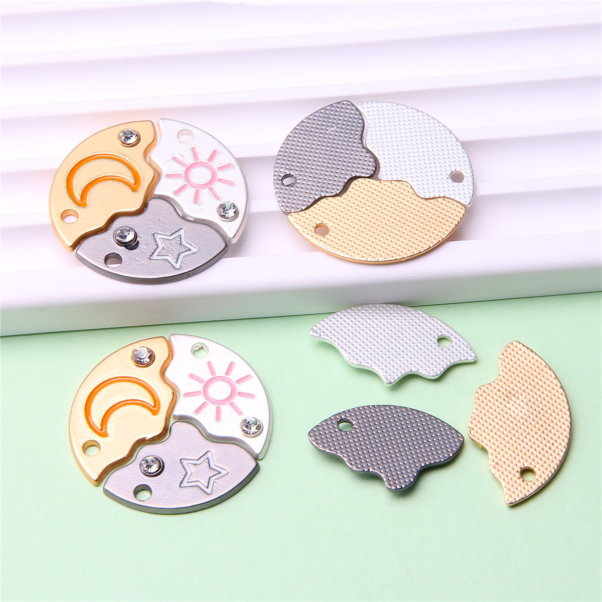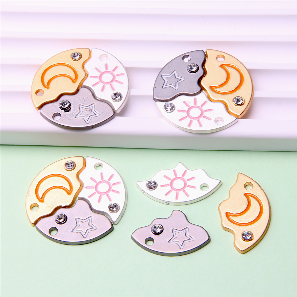 跨境新款双色太阳月亮镶磁铁可分开组合心形桃心翅膀镶锆石吊坠