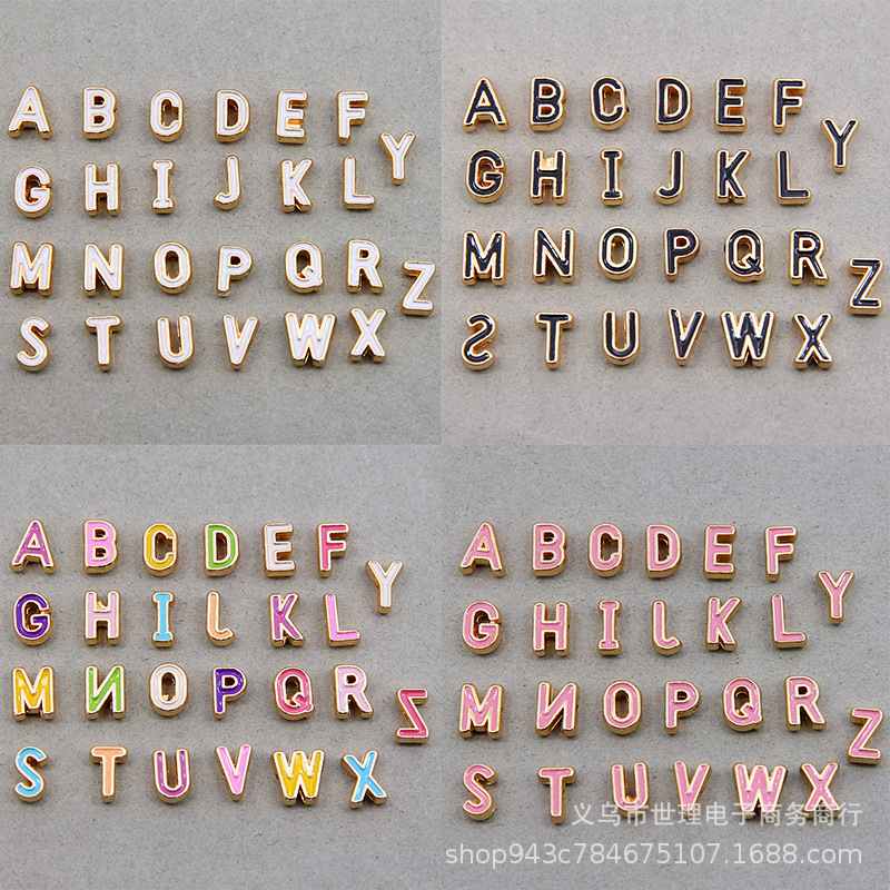 Diyアクセサリーの部品12色の油を垂らす合金の小さいペンダントのブレスレットのペンダントの部品の両面の英語のアルファベットの札を掛けます。