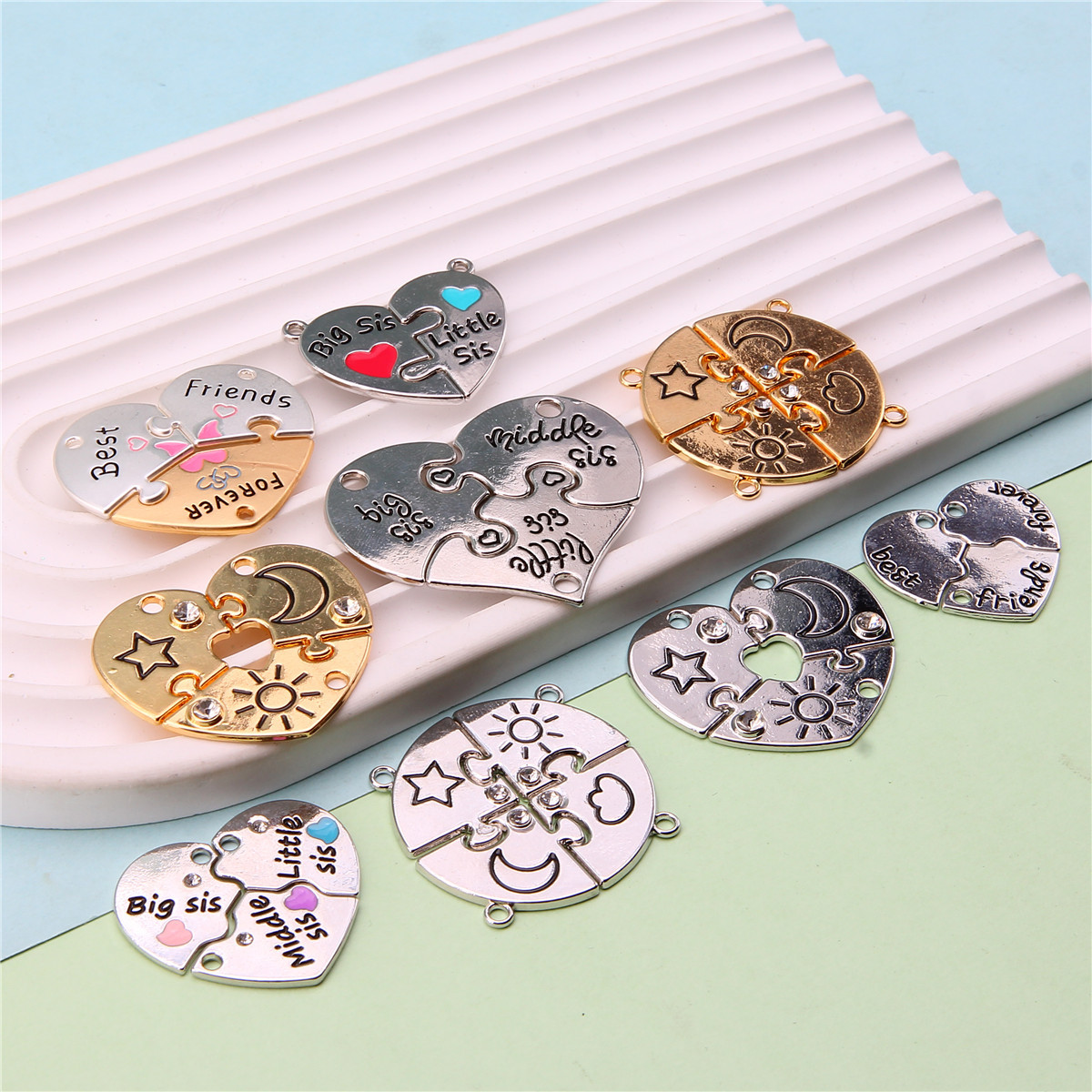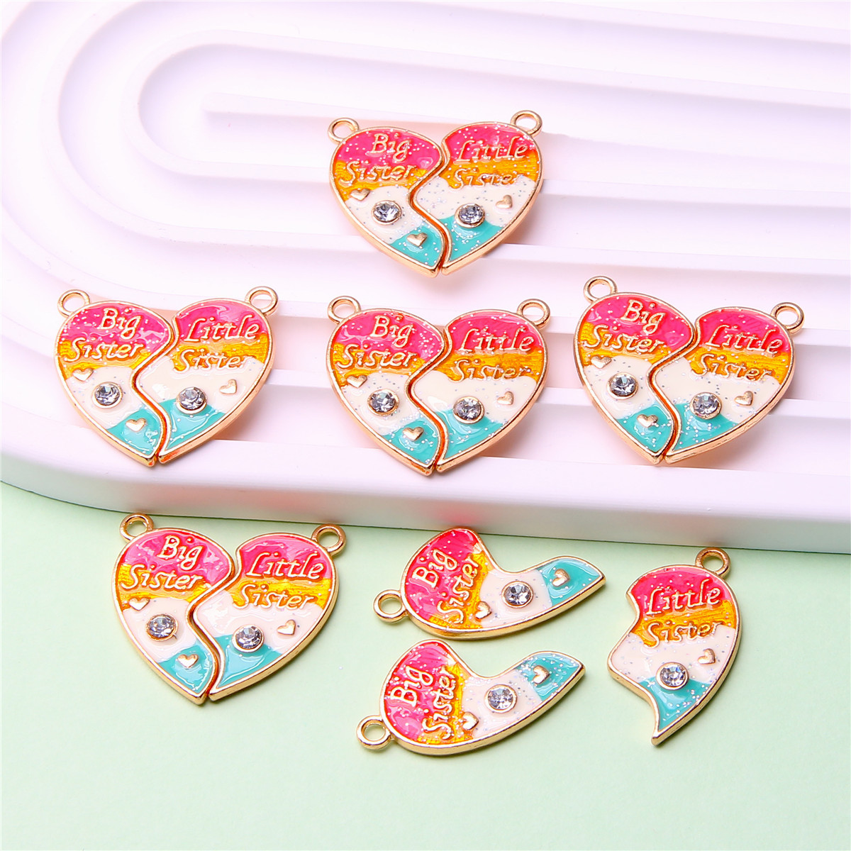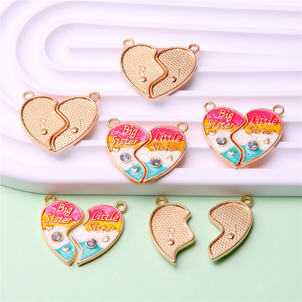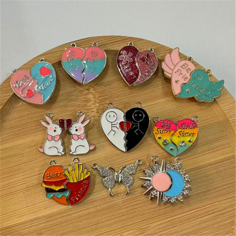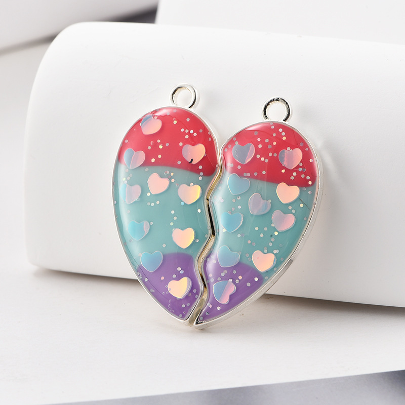 速卖通跨境爱心拼接好朋友儿童饰品配件 闺蜜彩色磁吸心形吊坠