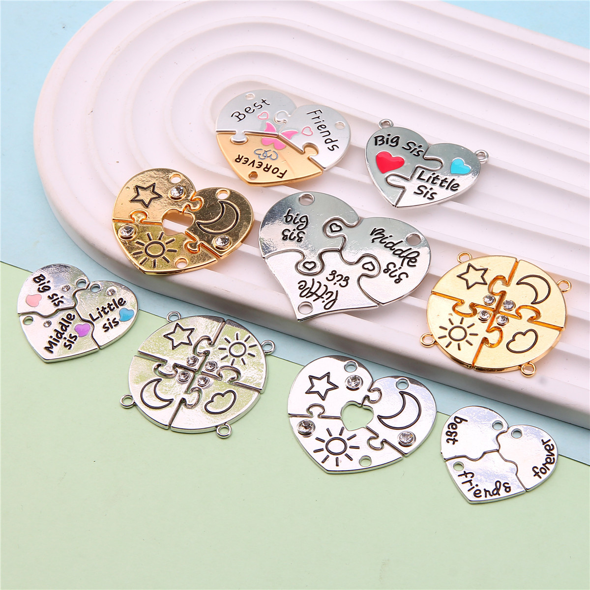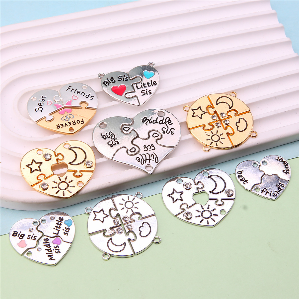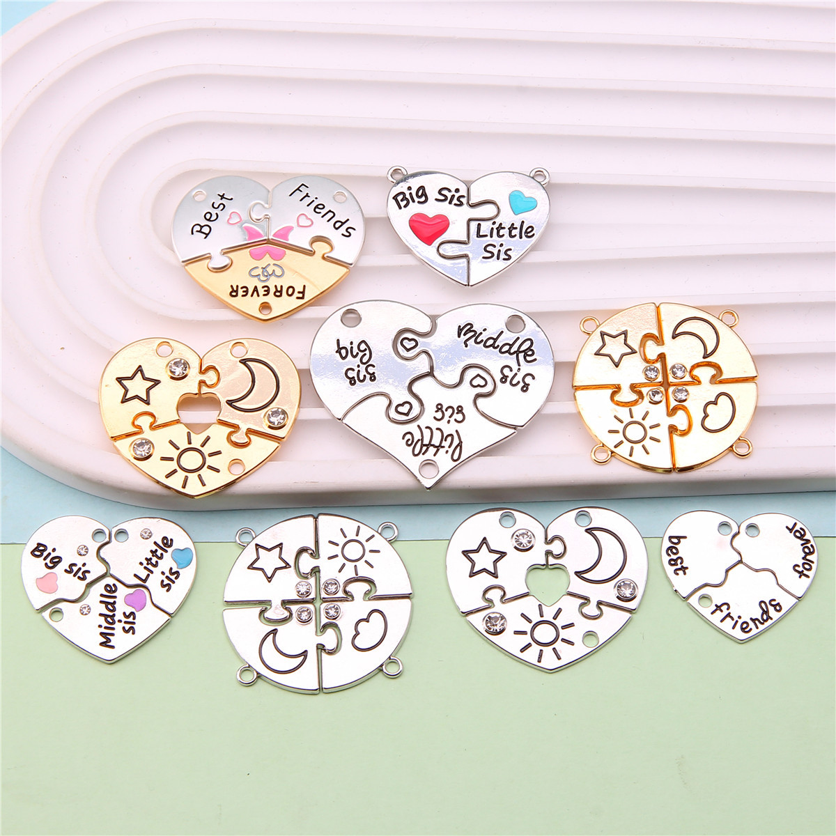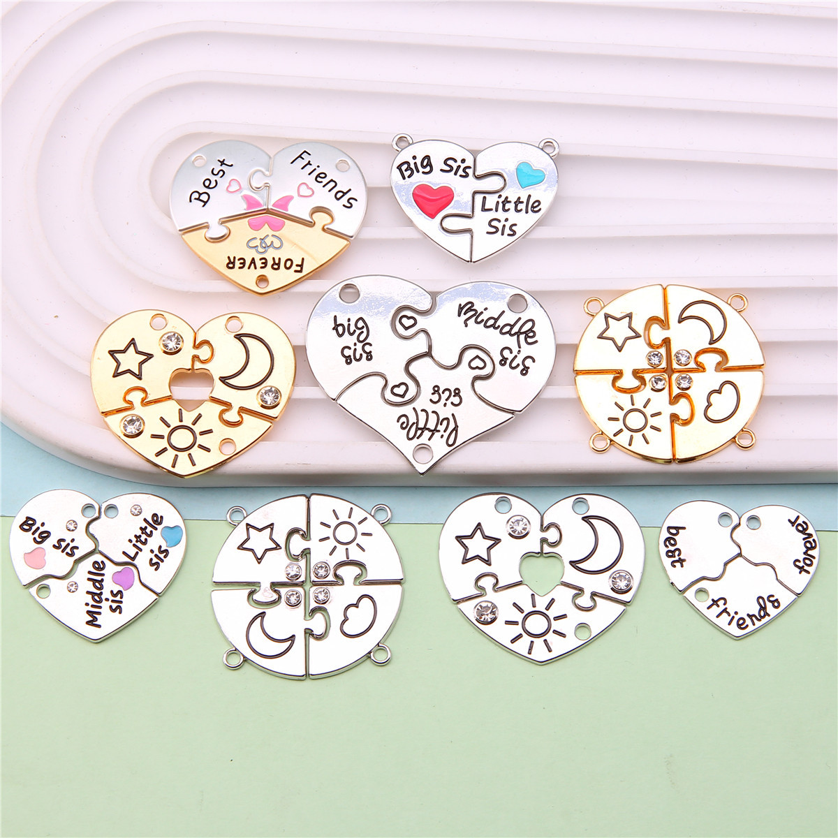 速卖通跨境爱心拼接好朋友儿童饰品配件 闺蜜彩色磁吸心形吊坠