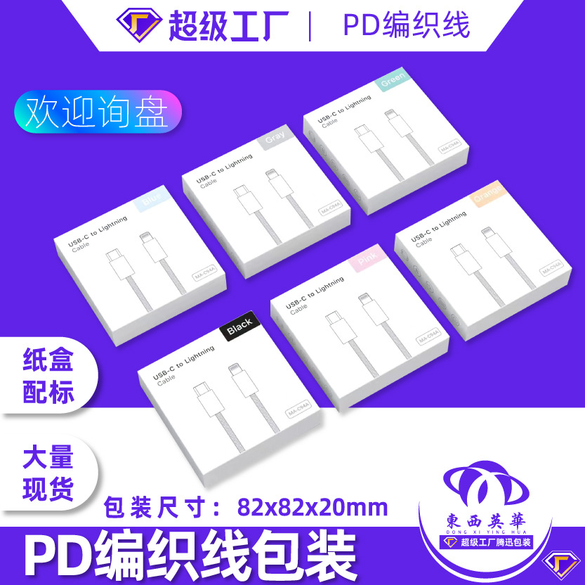 适用于苹果数据线快充线包装盒 C-L编织线包装 PD20w充电线包装盒