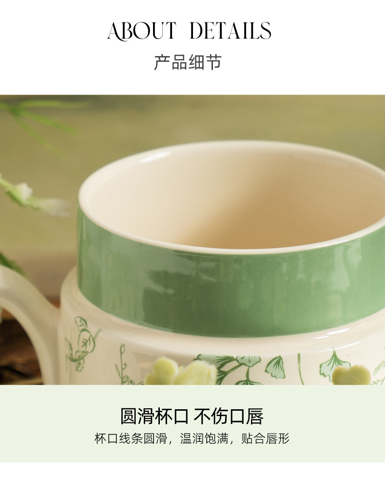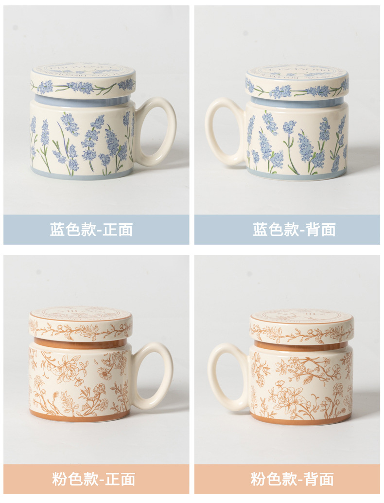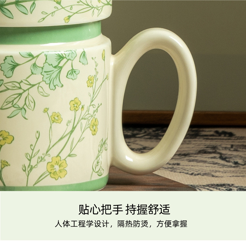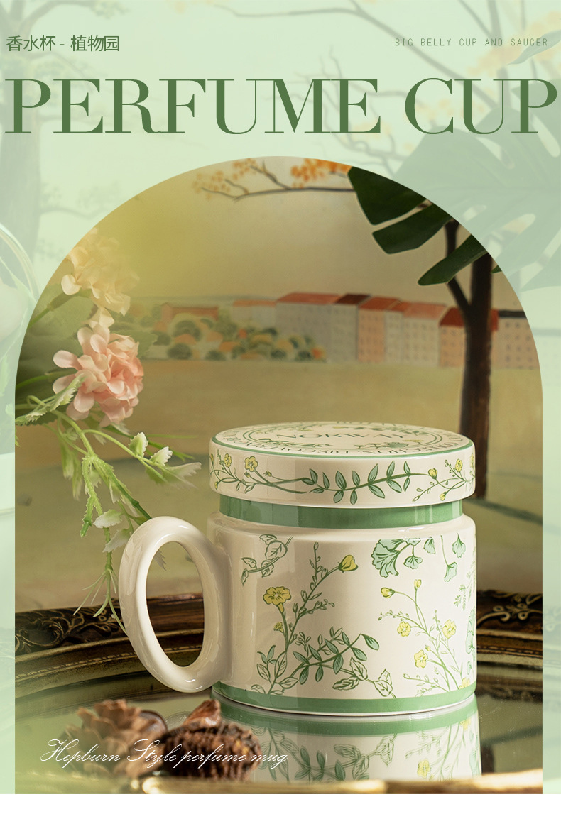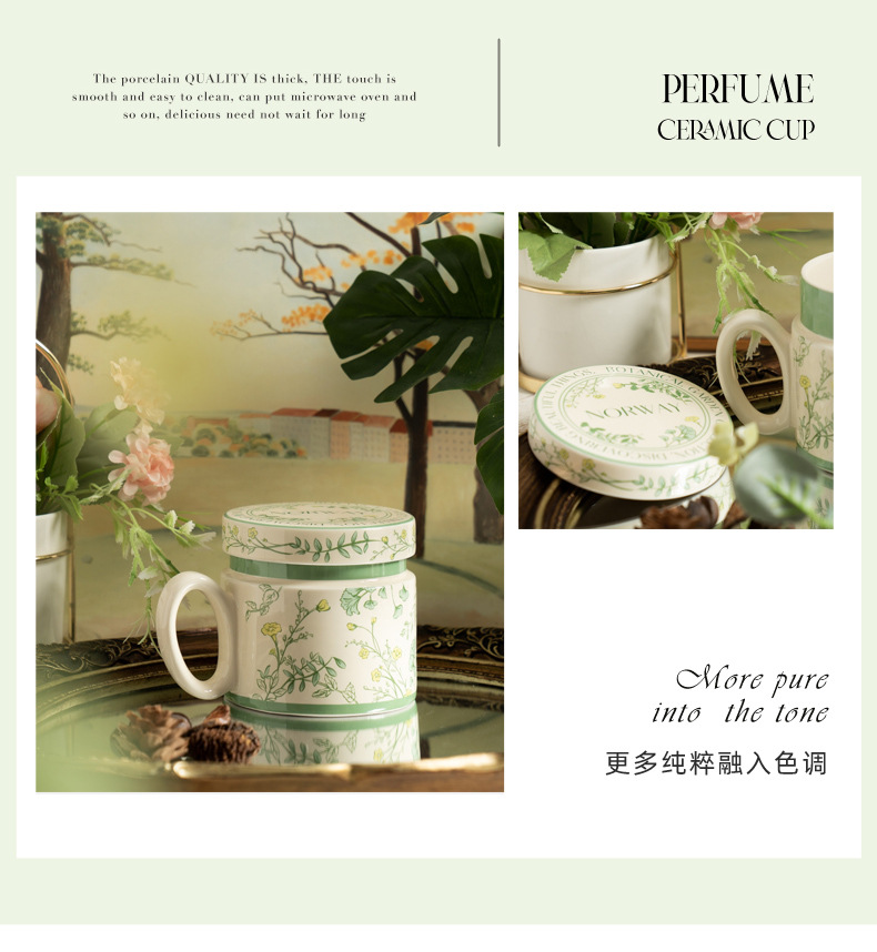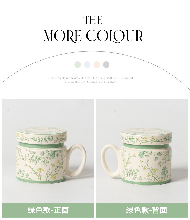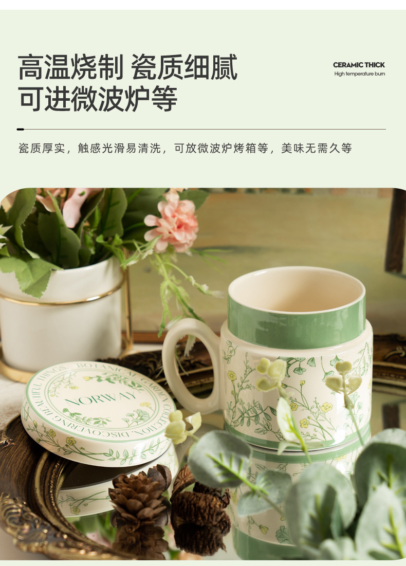 植物園韓国式防塵牛乳朝食カップオフィスマグカップカップカップカップセラミックコーヒーカップ蓋付きカップ