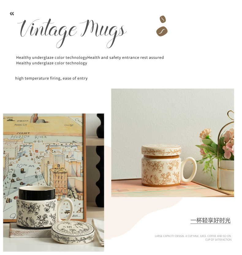 大容量アメリカンマグカップスプーン付き蓋コーヒーカップレトロins風飲水カップカップル高颜値
