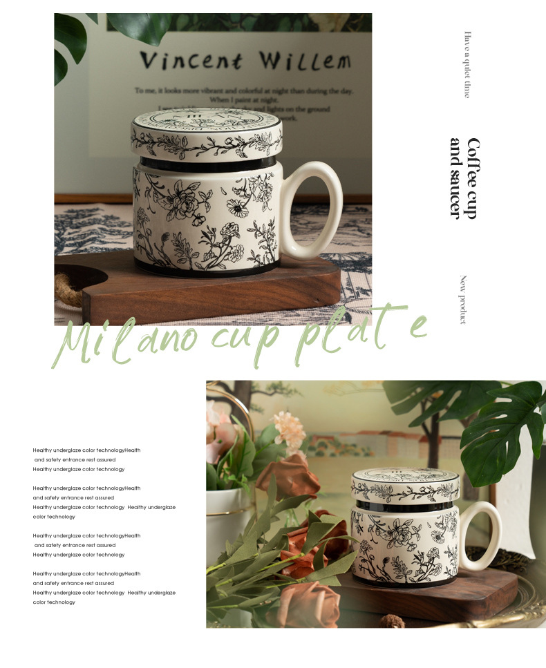 ミラノ英米陶磁器コーヒーカップ皿厚実復古風シンプル花卉午後カップコーヒーカップins風