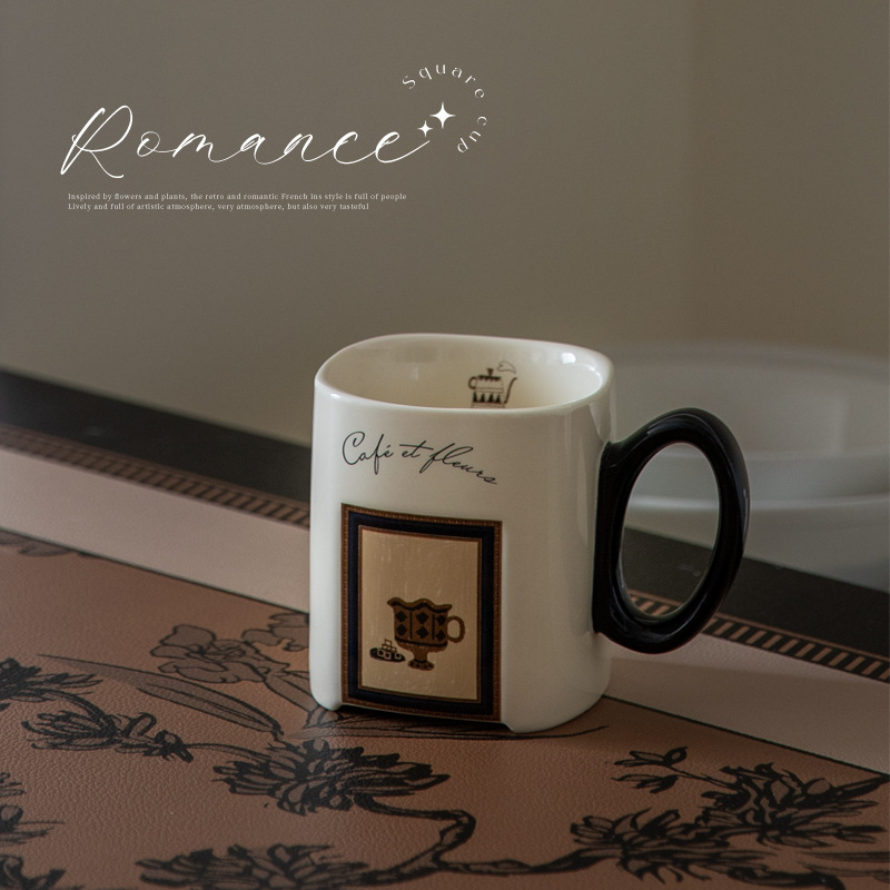 法式复古陶瓷马克杯咖啡杯早餐喝水杯情侣对杯送礼结婚伴手礼对杯