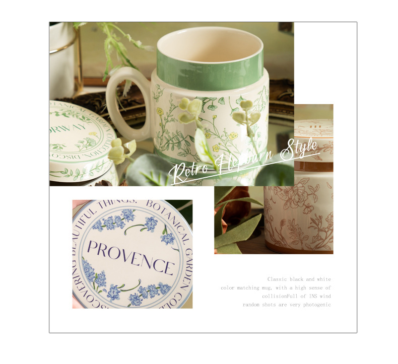 アメリカ陶磁器重厚コーヒーカップマグカップ花カップセット朝食カップ家庭用オフィスロゴ