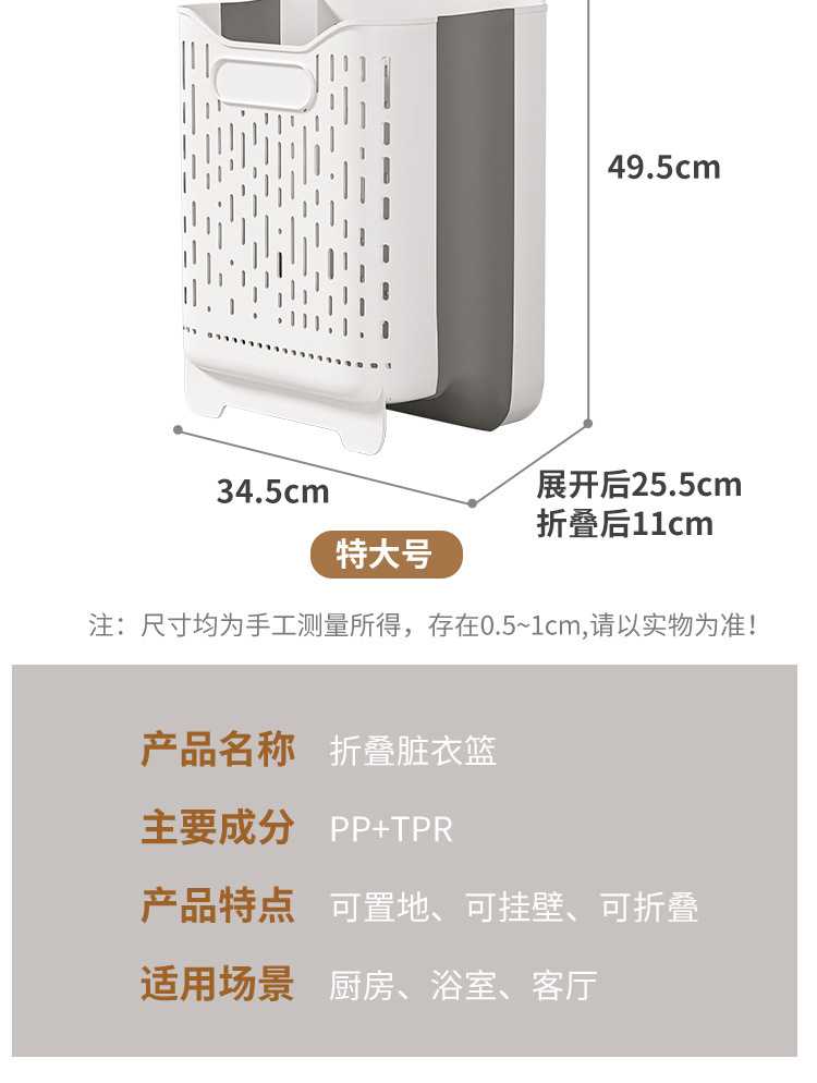 脏衣服收纳筐卫生间浴室放衣服神器家用可折叠壁挂洗衣篮脏衣篓桶