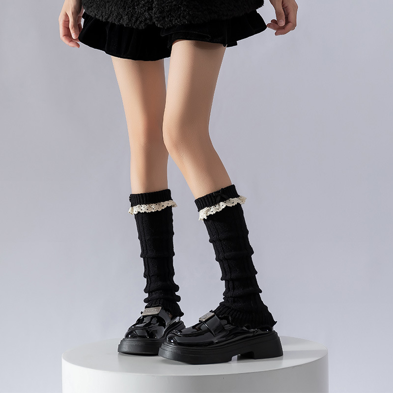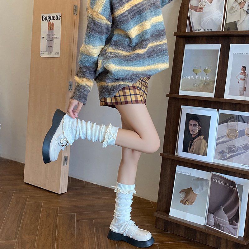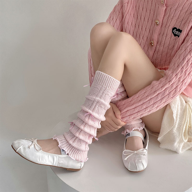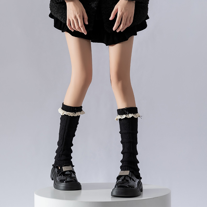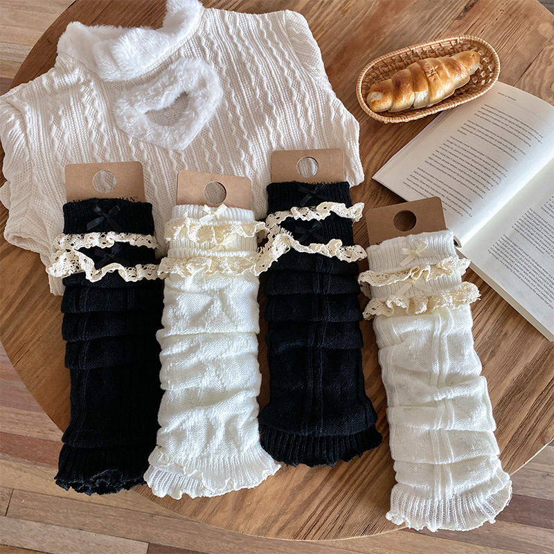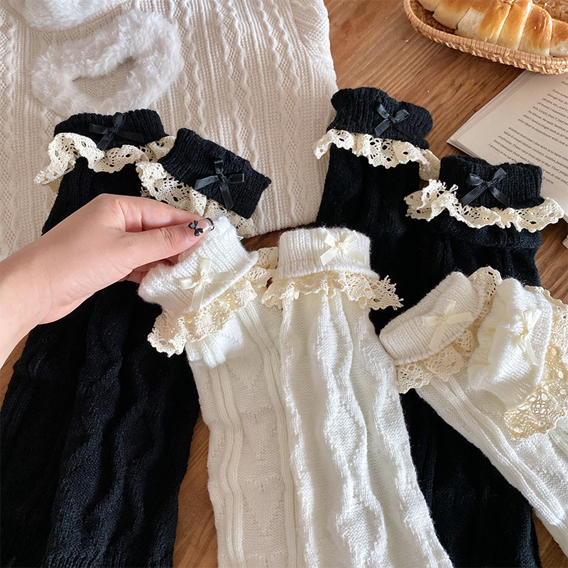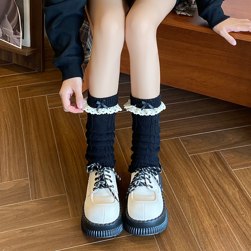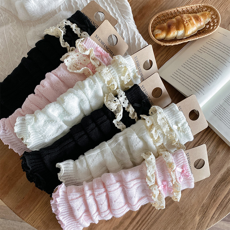 靴尚棉花边袜套女春秋长筒堆堆袜洛丽塔蝴蝶结芭蕾风少女小腿袜子
