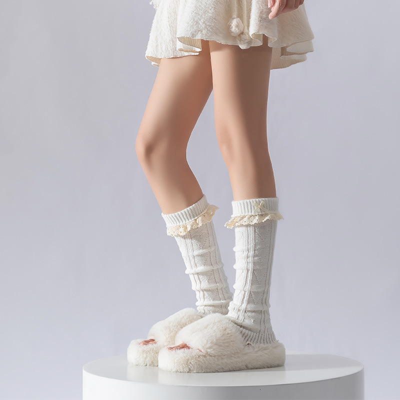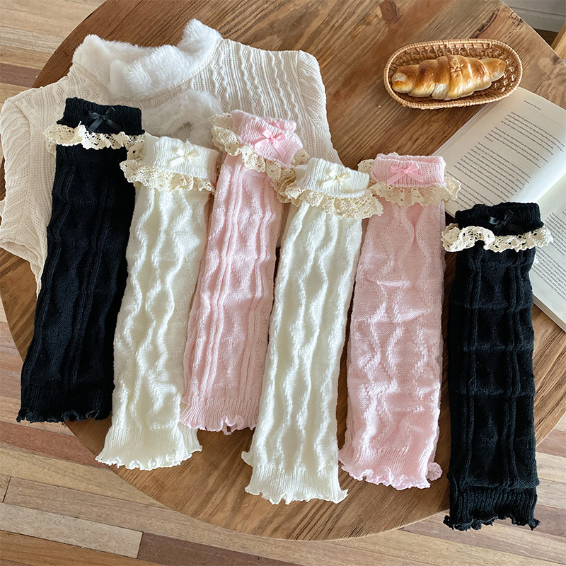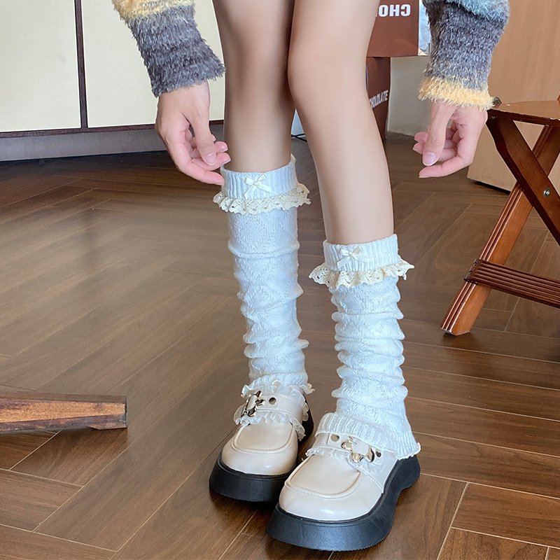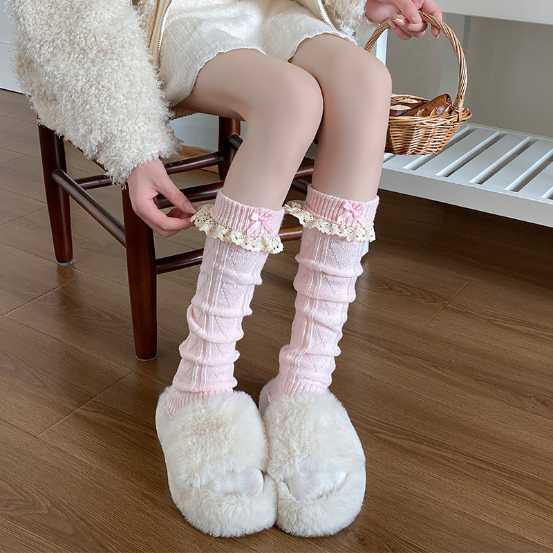 ストッキングの女性の甘いレースの蝶結びのふくらはぎの靴下のカバーの秋冬の外は日本のかわいい少女の風の靴下のカバーを着ます。