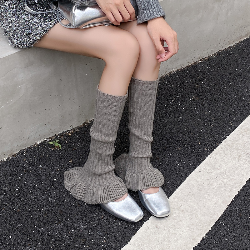 バレエ風の少女のレースのラッパの靴下は秋冬の外に韓国版のファッションの毛糸のメリヤスの保温の山のふくらはぎのカバーを着ます。