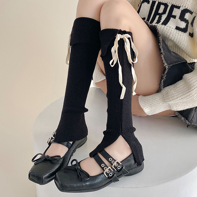 靴下カバーの女性の日系ファッションバンドの蝶結びのふくらはぎカバーの小衆の個性的なスリットが丸くなっています。