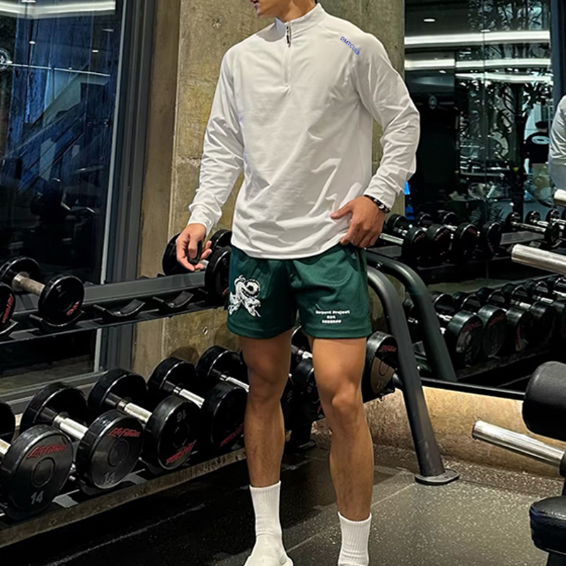 アメリカシームレスジャカード半ファスナー長袖弾力速乾運動丸襟レジャートレーニングガードルtシャツ男