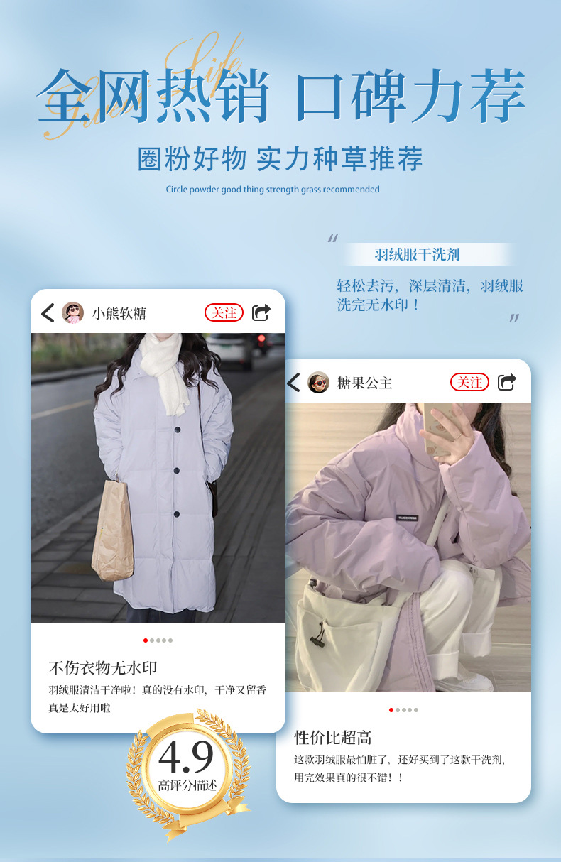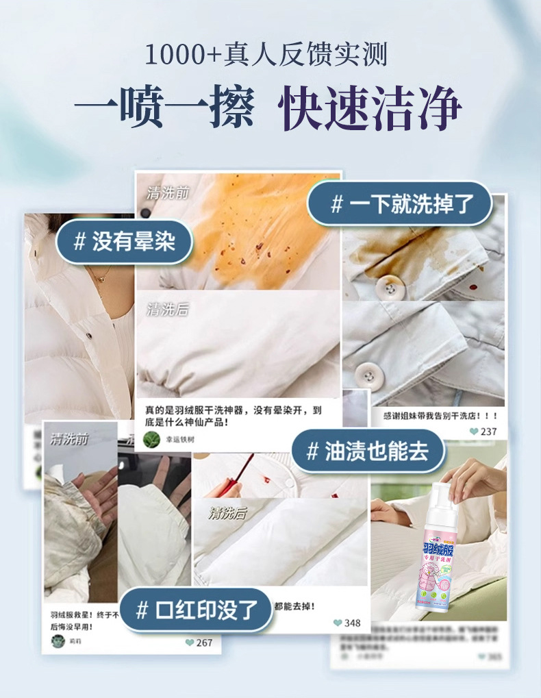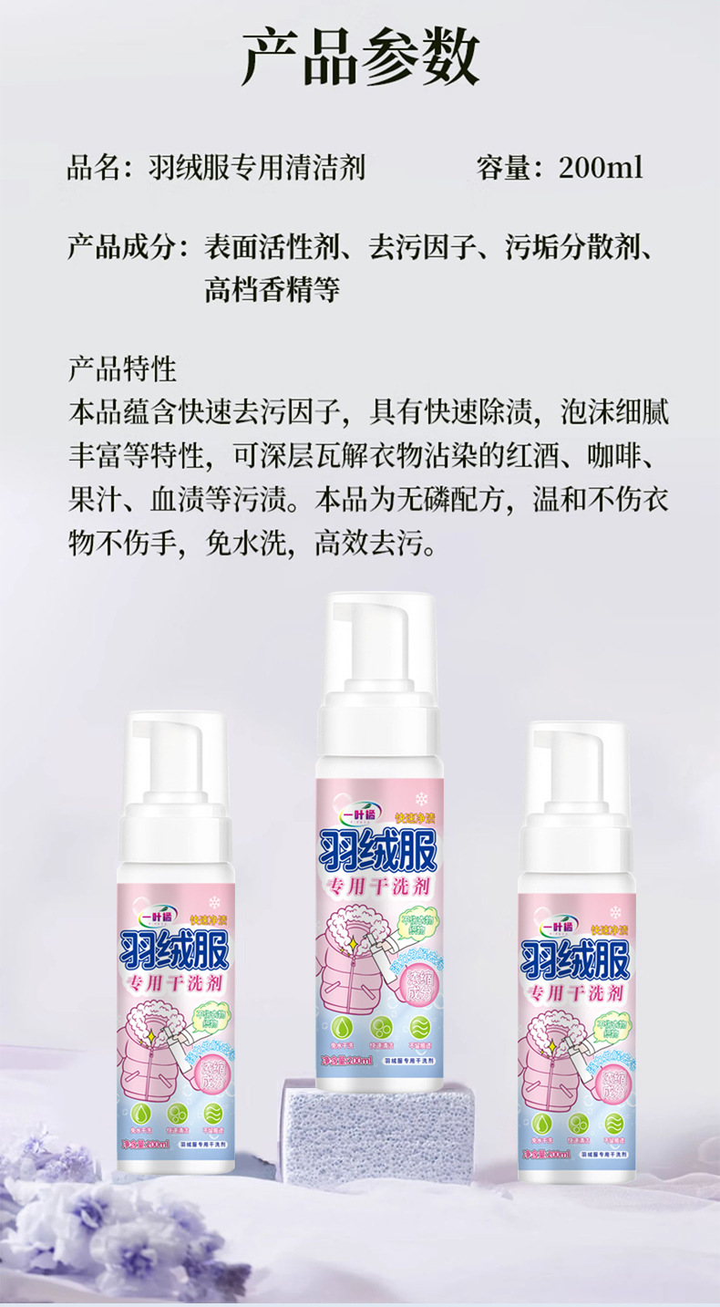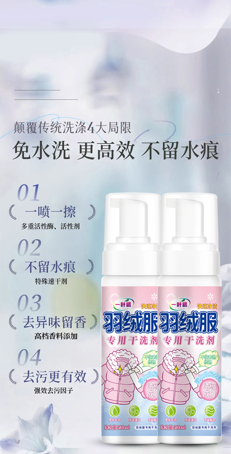 羽绒服清洗剂免水洗羽绒服清洁剂干洗剂家用衣服蓬松去油污渍神器
