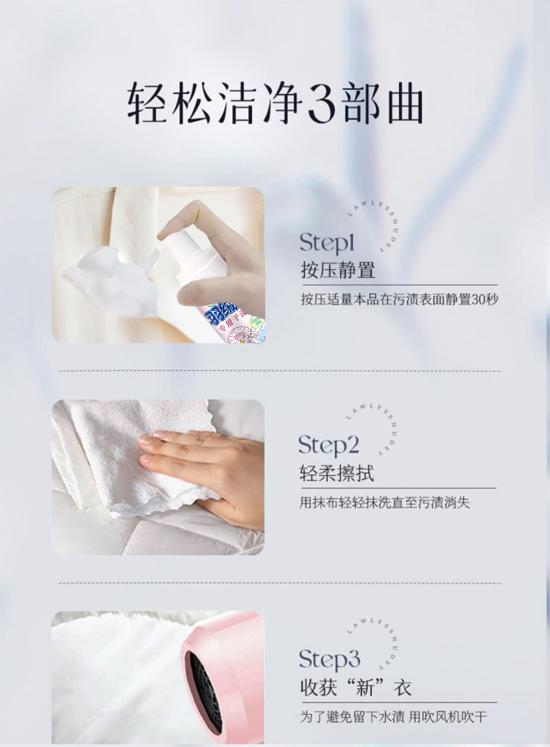 羽绒服干洗喷雾免洗清洁慕斯去油污霉渍无水印带刷头羽绒服干洗剂